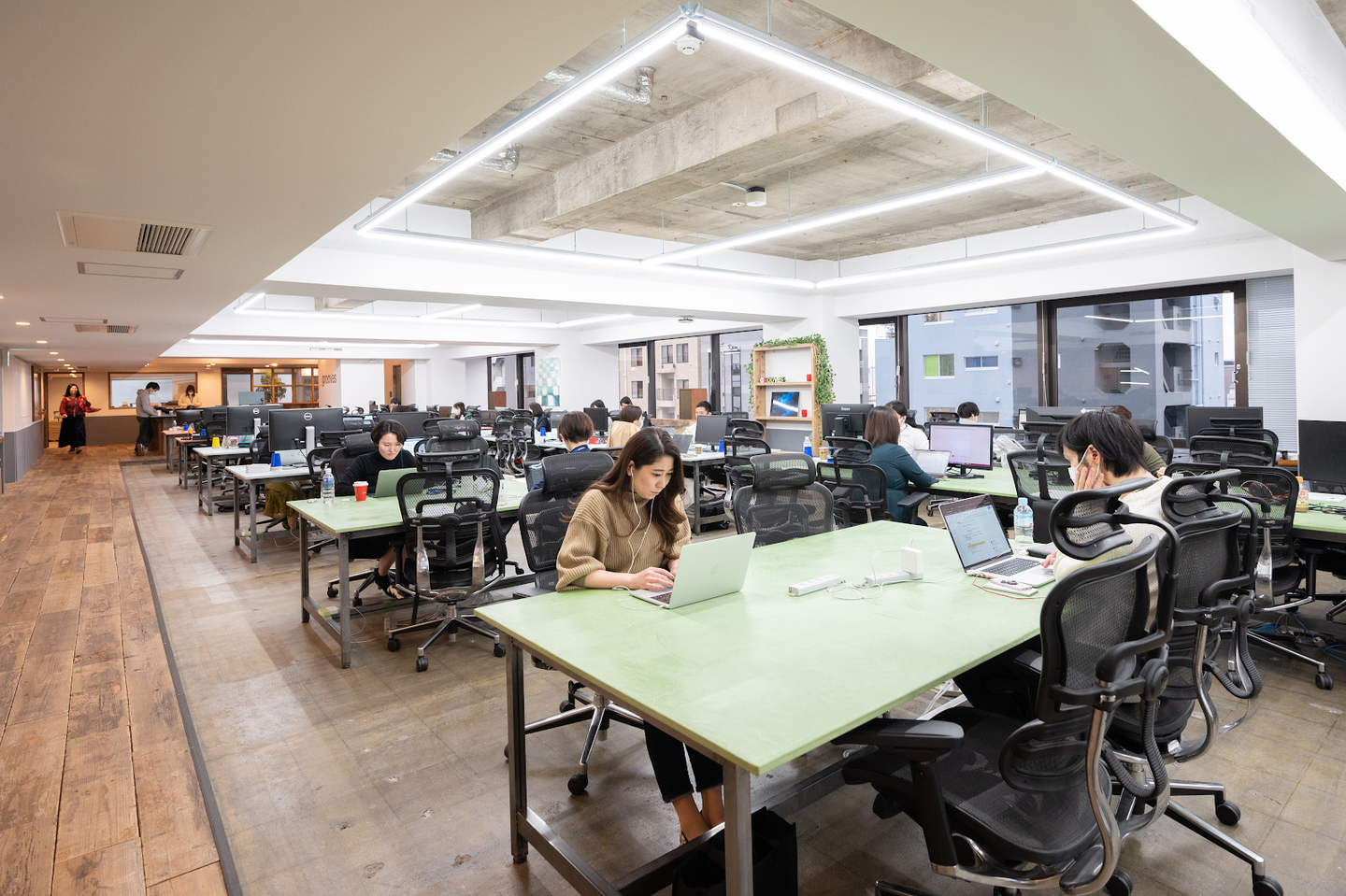 とはいえ、人に会うことで得られる情報や、伝わる熱量などメリットも多分にあるので、やっぱり出社も大事と思うことがあります。表参道にある広いオフィスで自由に席が選べます。気分転換にも最適です。