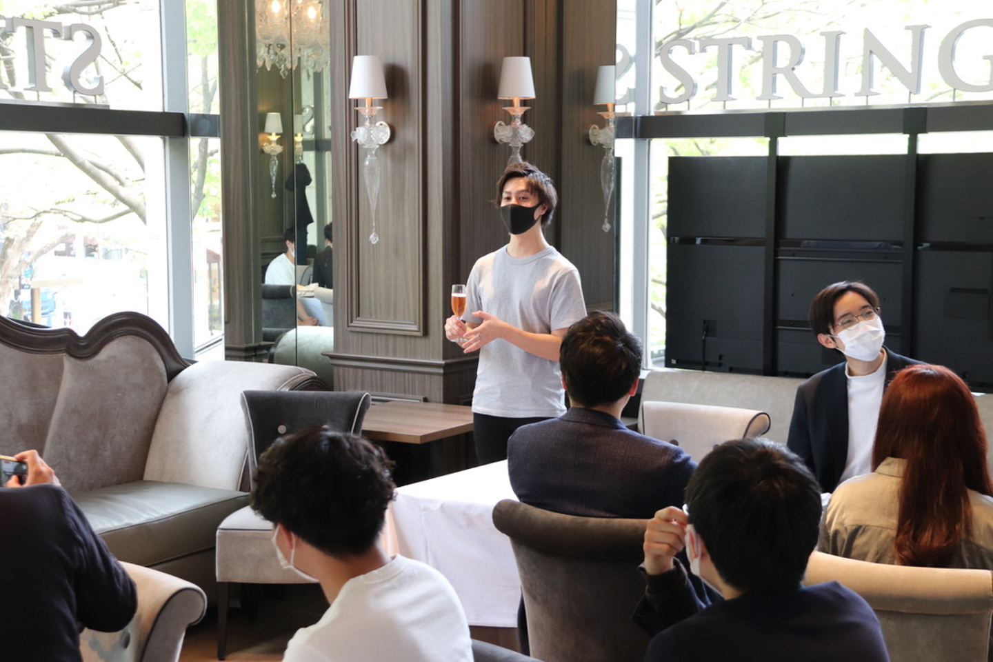 ■ここからは懇親会へ!乾杯の挨拶は、新卒2年目メンバーが務めました。