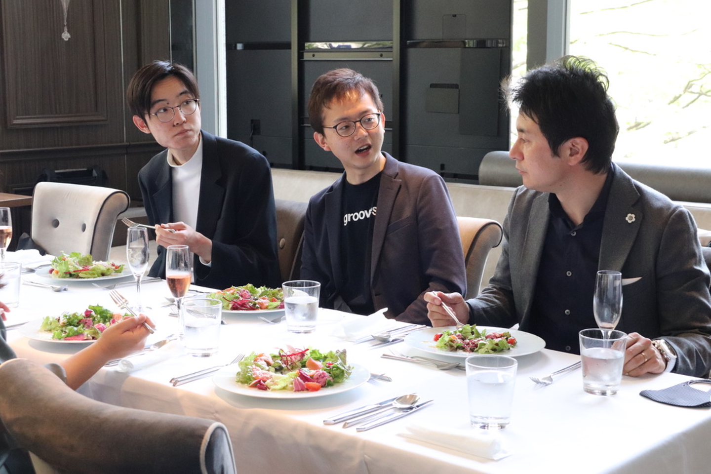 grooves に入社を決めた理由や自身が成し遂げたいこと、社会人になって意識・行動すること、などそれぞれの想いを熱く語ってくれました。