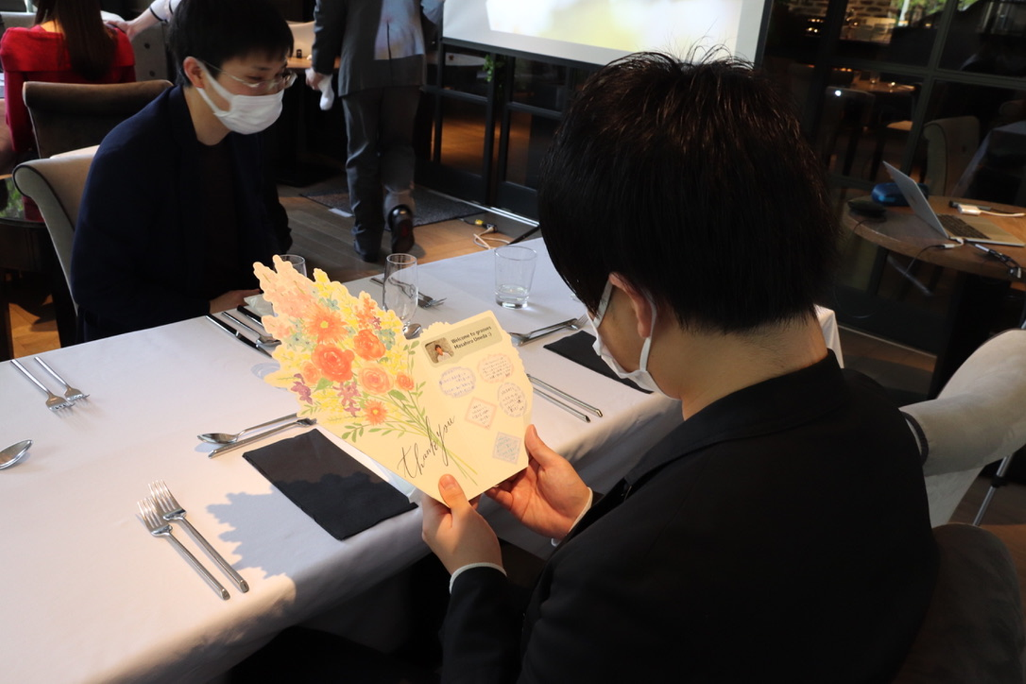 配属先メンバーからのメッセージを嬉しそうに眺めていました!