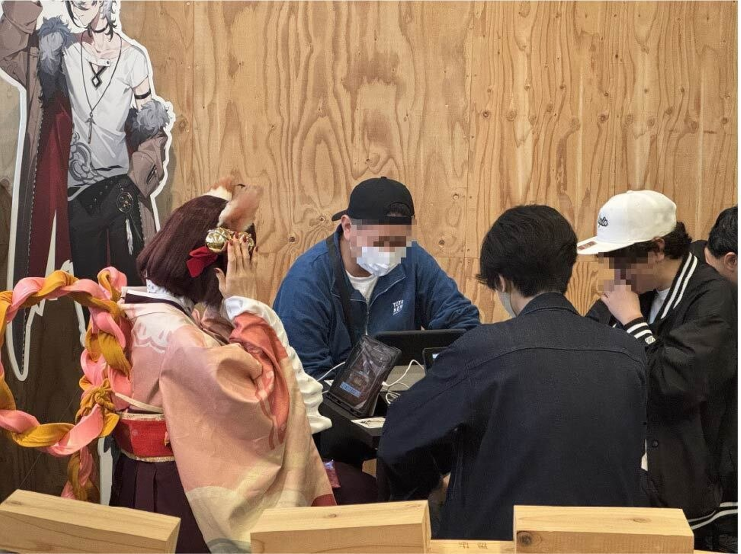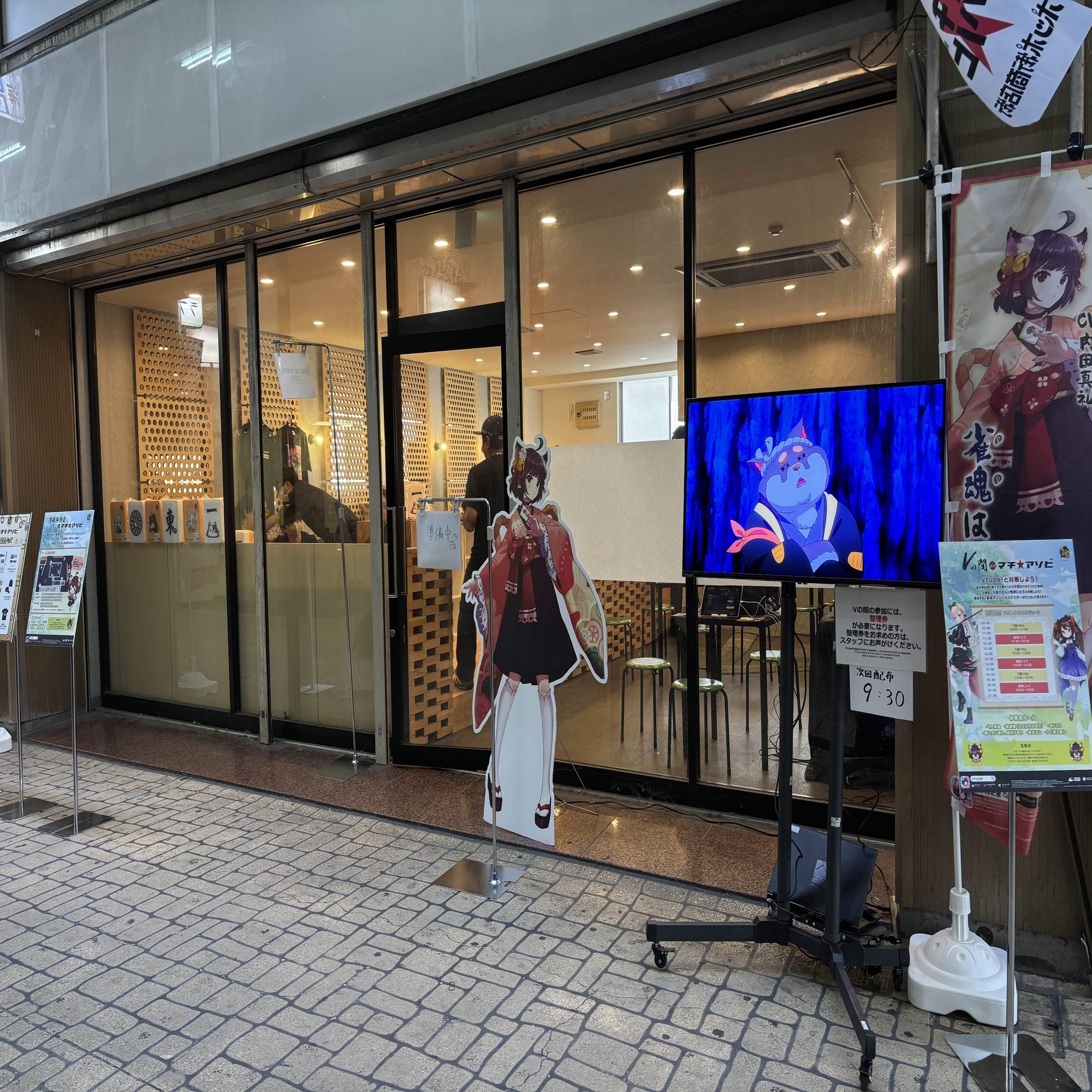 試遊ができる「交流の間」と物販コーナーにはどんどん来場者をご案内し、VTuberと対局できる人気企画「Vの間」では、参加希望者に整理券を配布します。