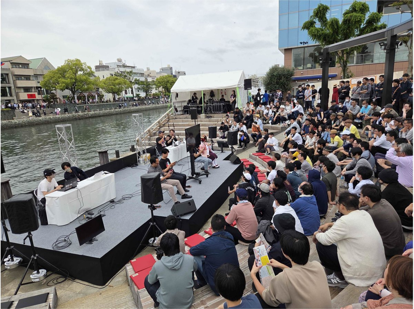 川沿いのステージは大賑わい