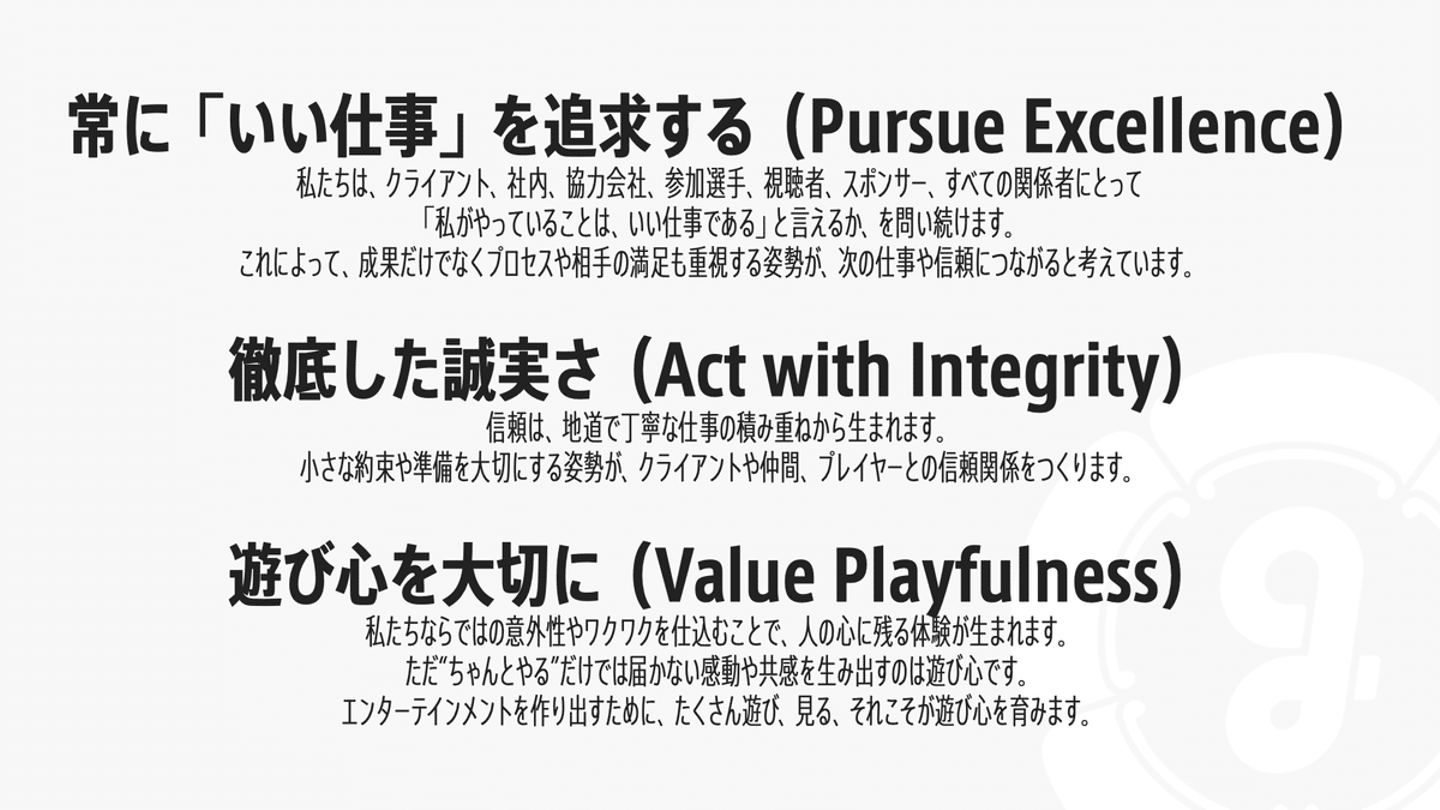 ゲームカルチャーを大切にしながら、柔軟性と力強さを兼ね備えた組織として、私たちはこれからも成長していきます。