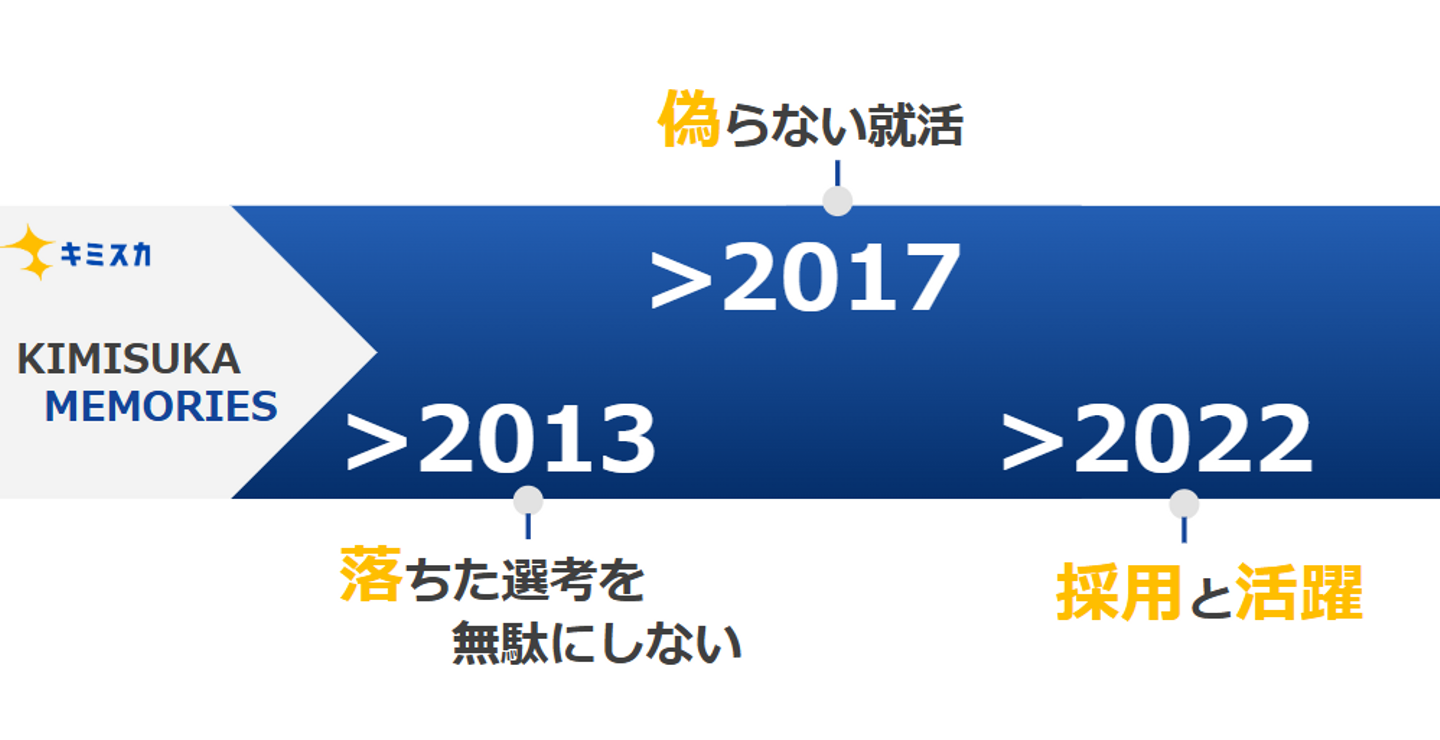 【キミスカ】は、新卒向けのダイレクトリクルーティングサービスとして12年以上の歴史を重ねてきました。ただ、そこに至るまでの道のりは決して一本道ではありません。常に変化と向き合い、時に試行錯誤を重ねながら、サービスも、チームも、そして会社そのものも進化していきました。