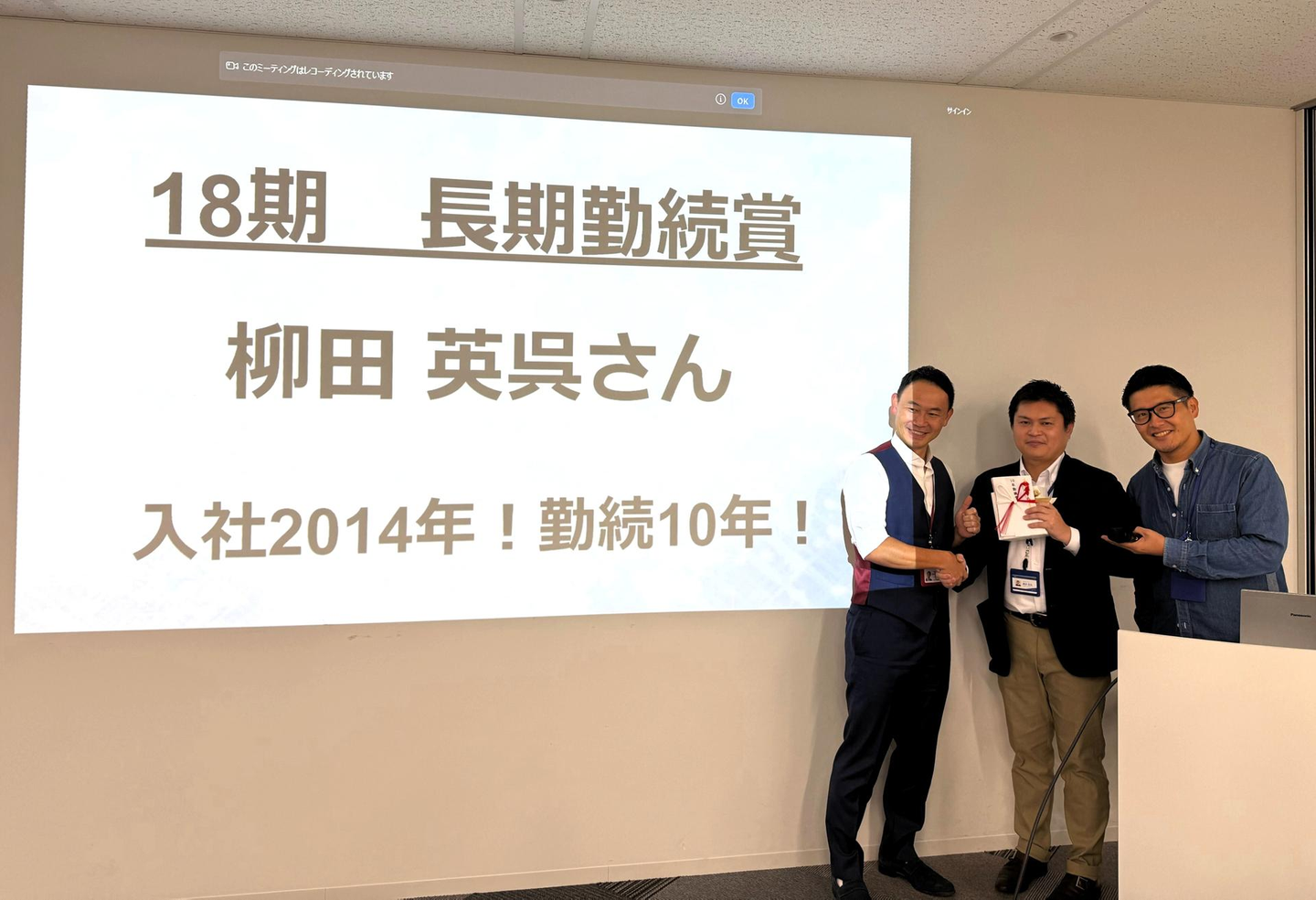 最後に…表彰制度の様子を少しお届け!勤続年数の表彰は入社5年、10年、15年の節目に役員からプレゼントが送られます。自分自身も入社を振り返る良い機会になっています!
