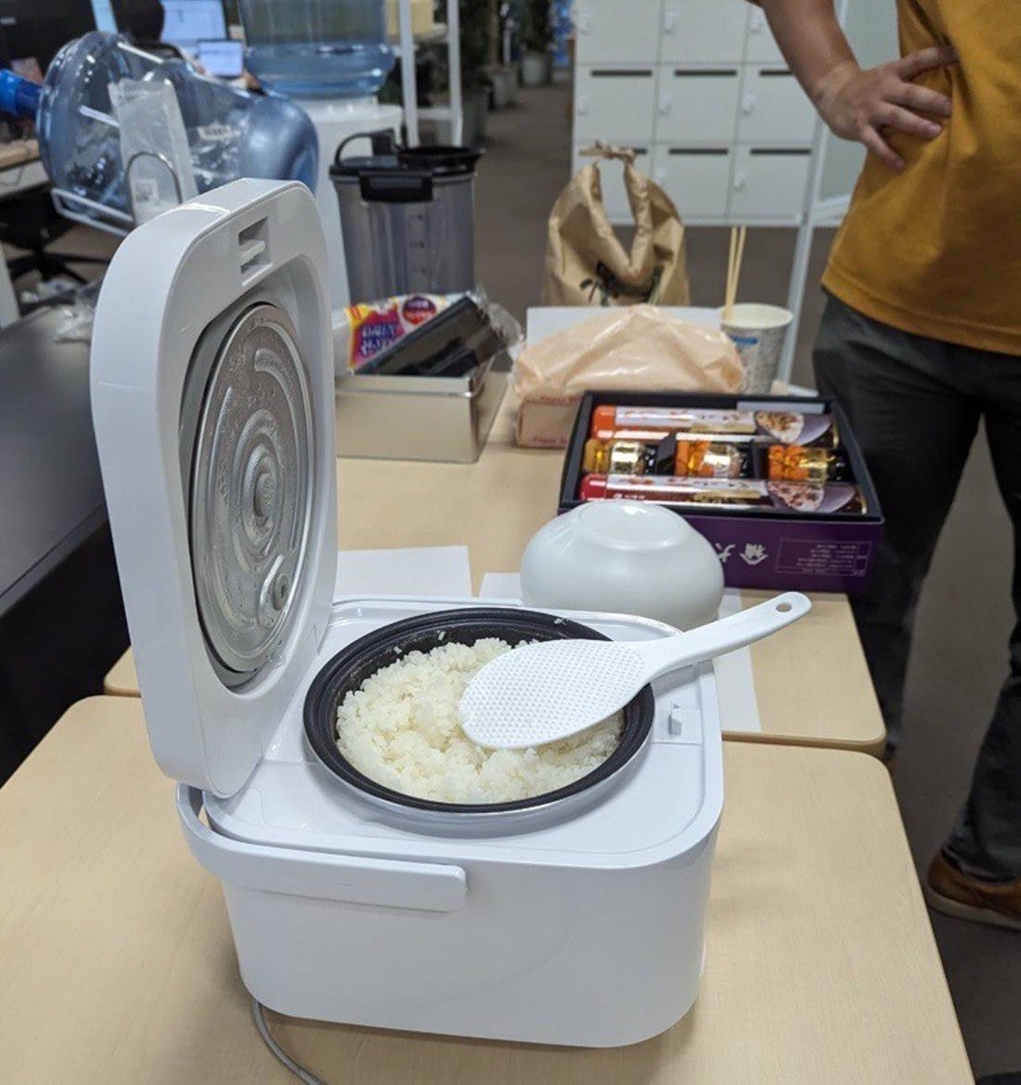 私は、社内に炊飯器と米袋が置いてある光景を初めて見たときは、衝撃を受けました、、、