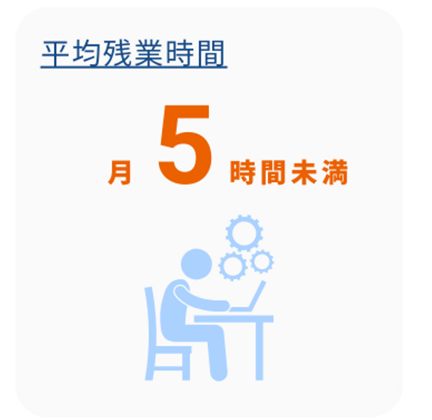 平均の残業時間は月5時間未満。残業時間は少ないです。