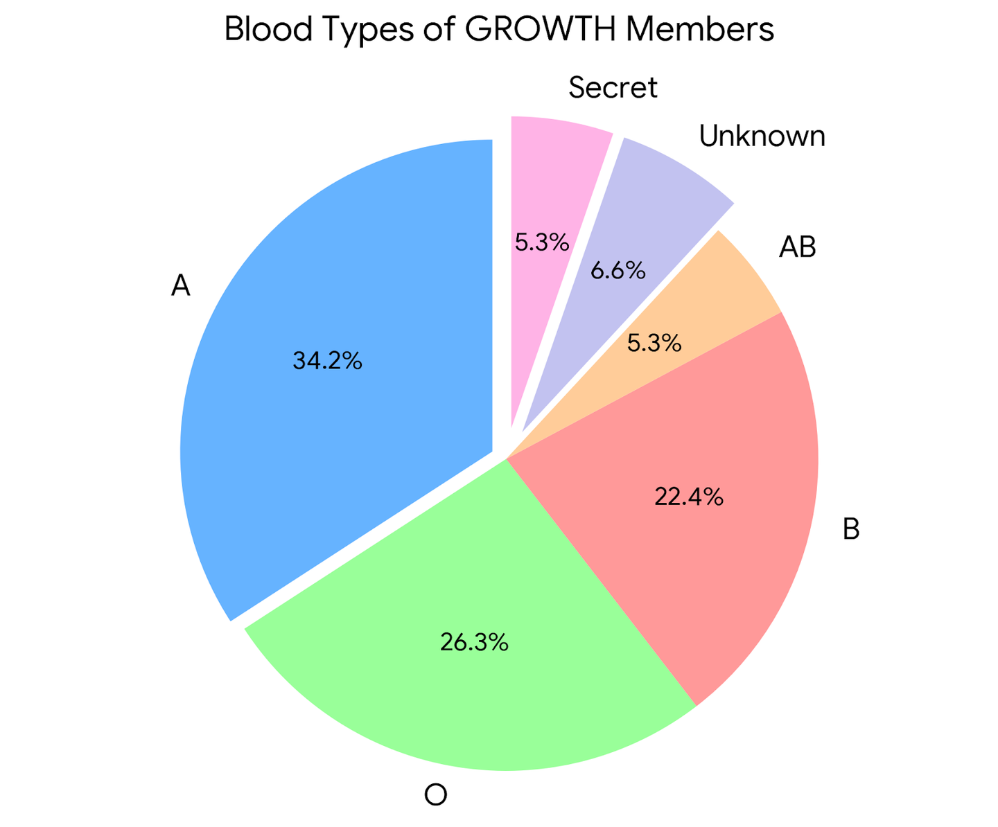 では、お待たせしました。Growthメンバーの血液型構成比はこちらです!