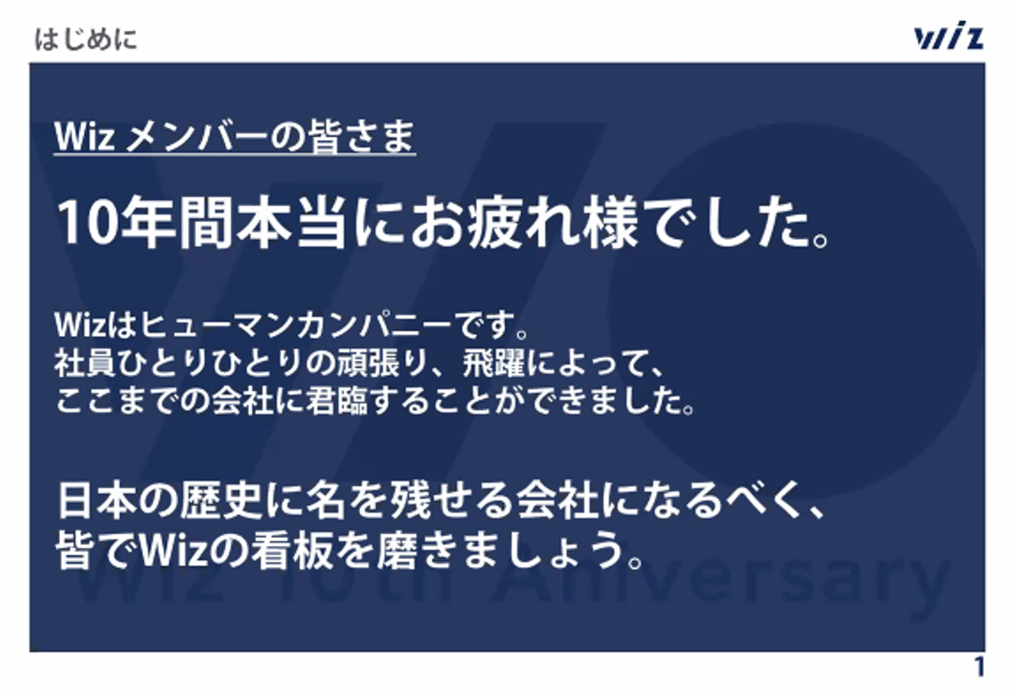 10年間、今いるメンバーが頑張ってWizを作ってきてくれたと思います。これからの10年は私たちがWizをひっぱり、Wizを前に進めていけるよう頑張っていきます。Wizが作った新しい採用事業を日本に広めていきたいと思います。