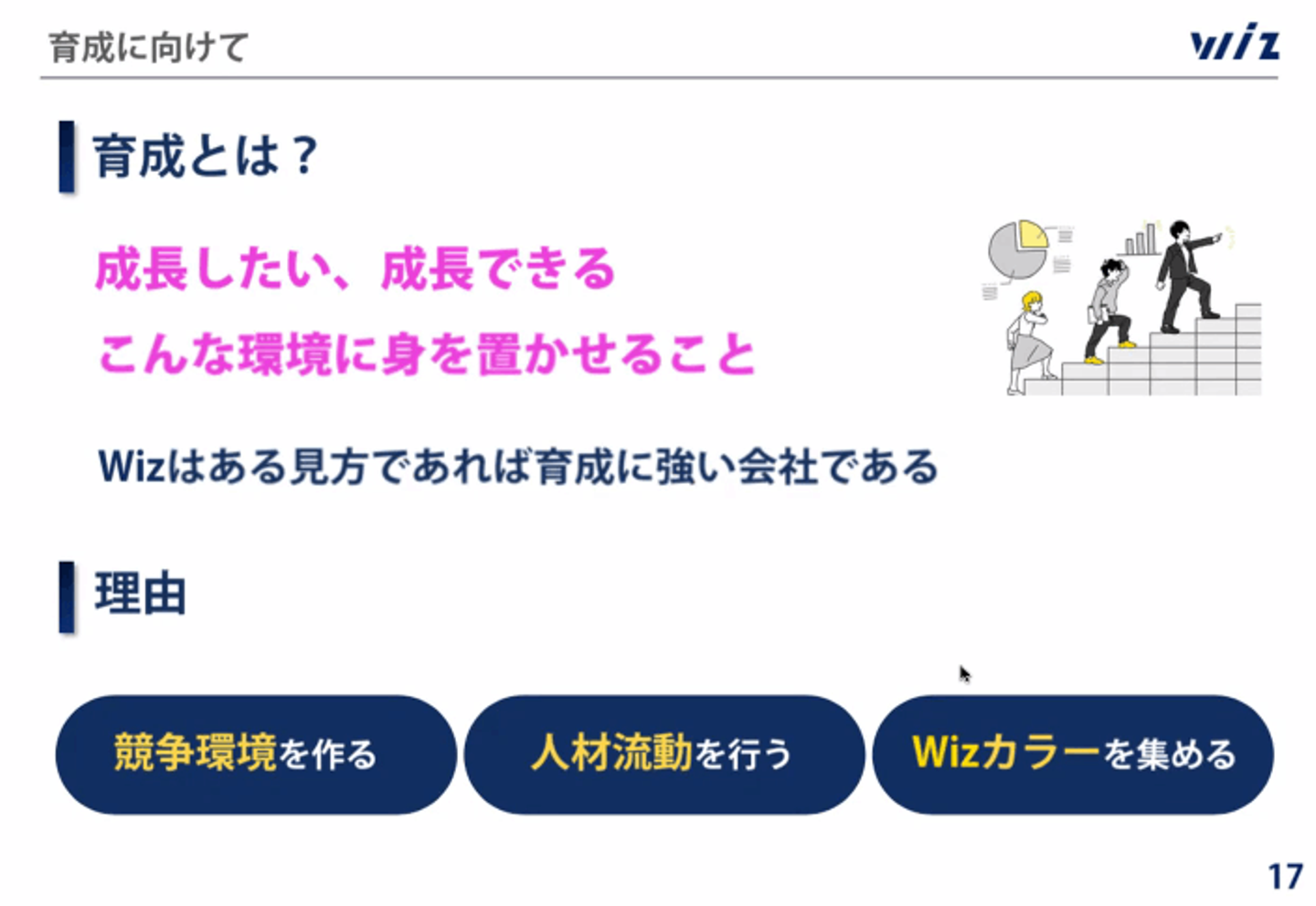 皆さんが背負いたいと思う環境を構築しますので、ぜひWizの環境をフルに活かし、背負い、幸せを感じ、豊かな人生をつかんで欲しいと思います」
