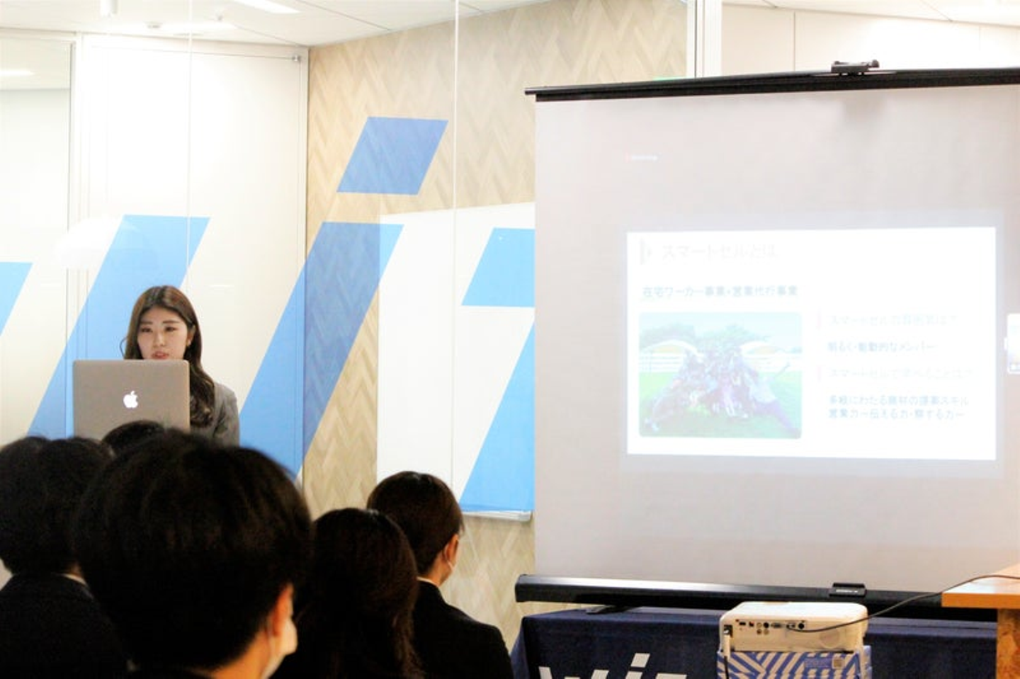新卒社員の皆さんに向けて、歓迎ムービーを上映。全国の各支社・各事業部の雰囲気やカラーが伝わったのではないでしょうか!?