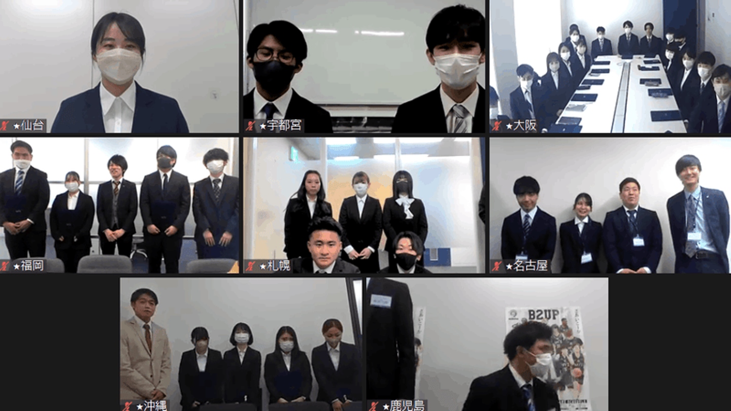 その後、辞令交付にうつります。各支社の辞令交付の様子をオンラインで繋いでいきました。