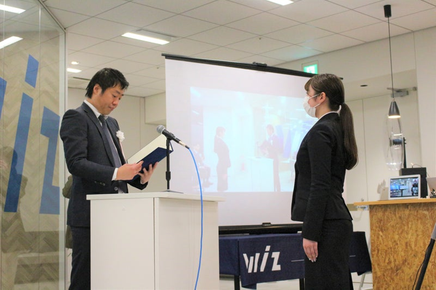 表彰式、先輩社員スピーチ、新入社員作成ムービー上映など、Wizならではの入社式の様子をお届けします。