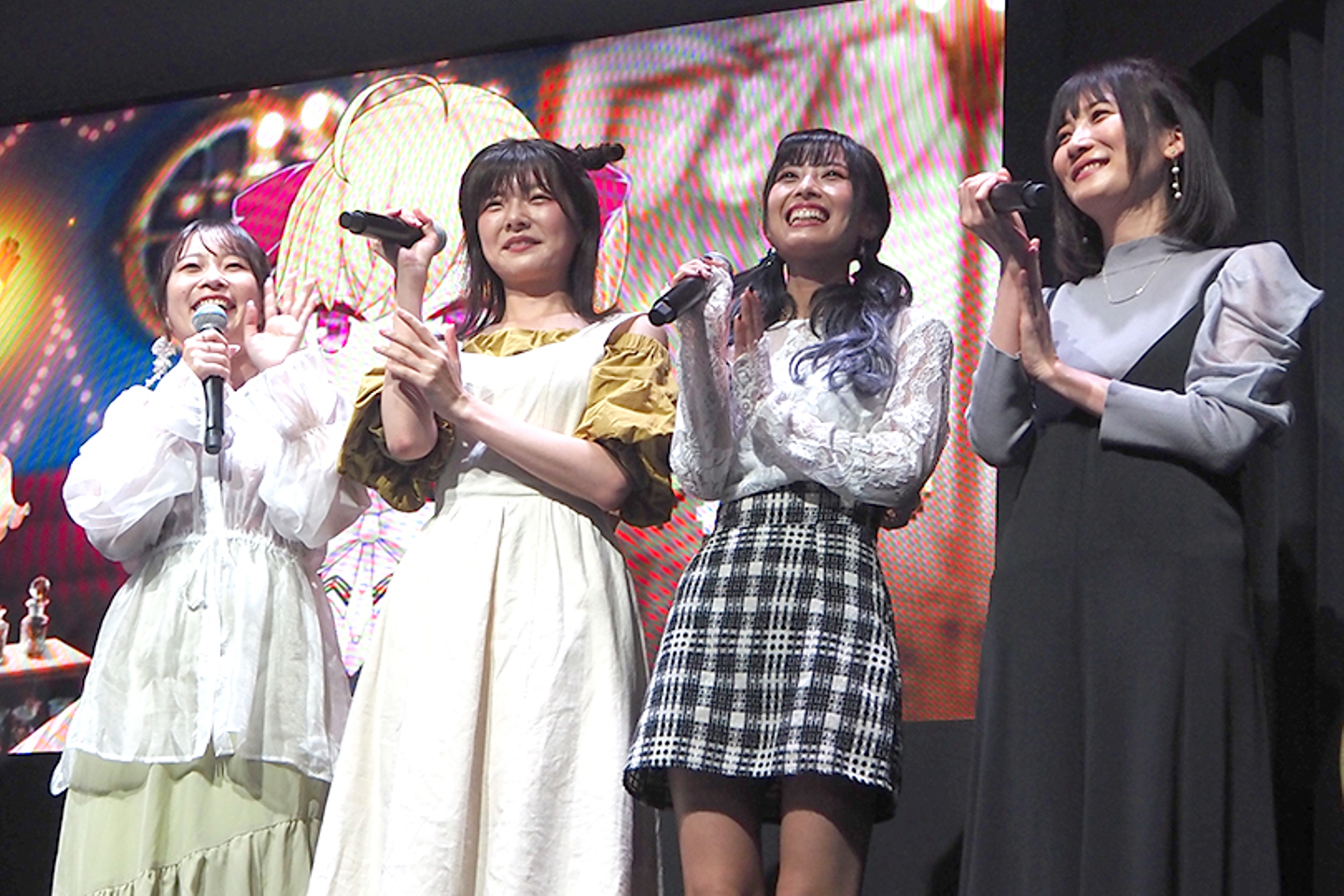 4人が自身のキャラクターの衣装や性格について魅力を語り、さらにはセリフを生で読み上げ披露すると、会場は大いに沸きました。