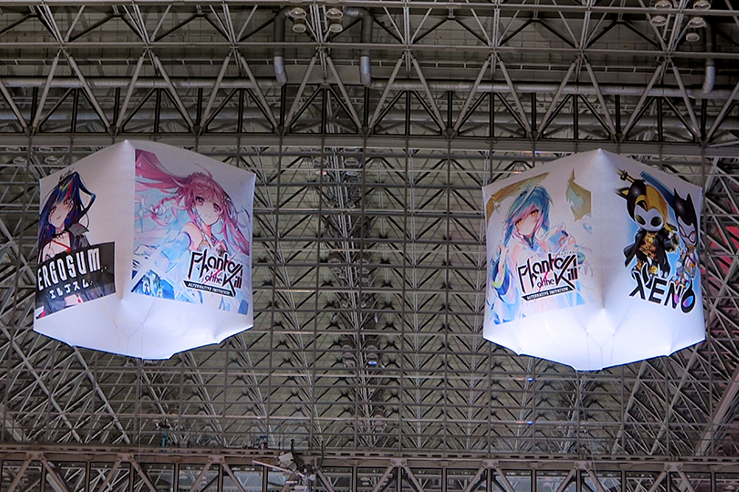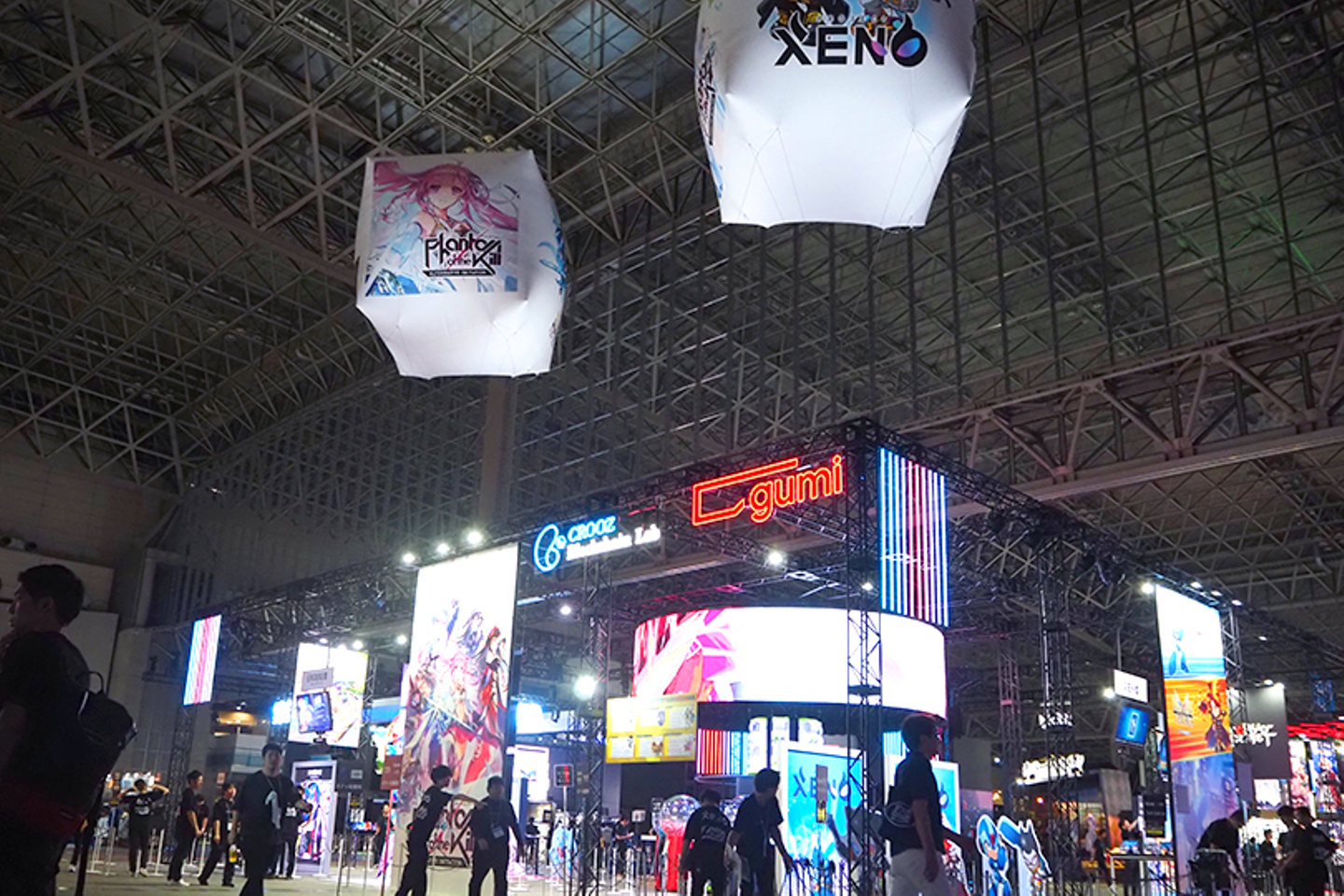 各タイトルのメインキャラを描いたバルーンが、広い会場で遠くからでも一目でgumiブースの場所を教えてくれます!