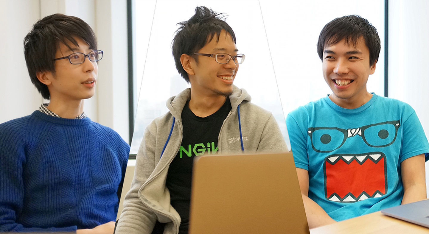 鈴木さん(写真中央)/広告技術部 Network Adsチーム 新卒で株式会社サイバーエージェントへ入社し、広告計測システムのサーバサイドからフロントエンドまでを経験。2018年4月、Gunosy入社。Network Adsチームにて、主に配信周りのサーバサイドを担当。使用言語はGo,Python。