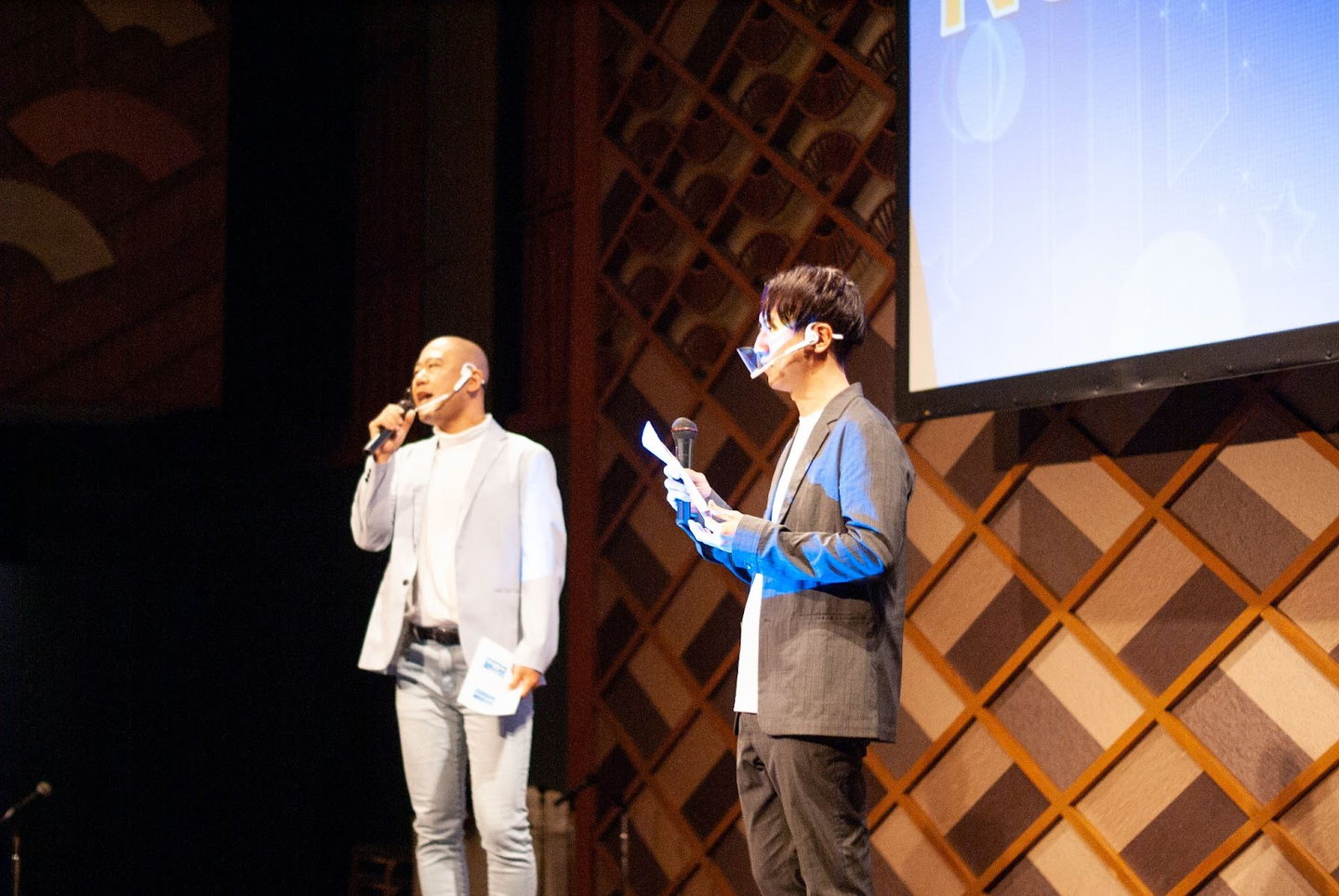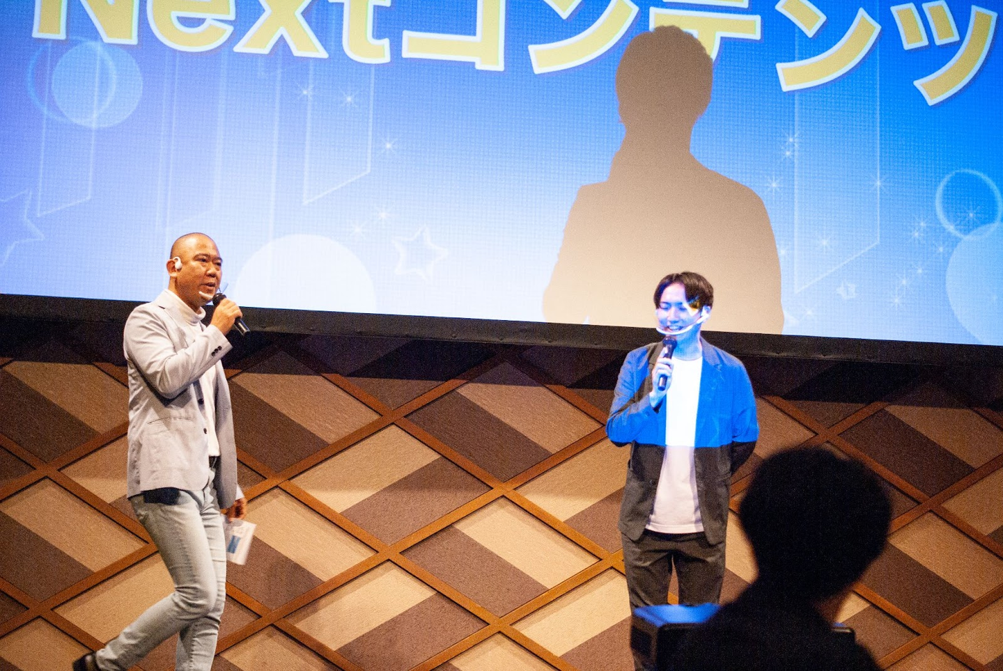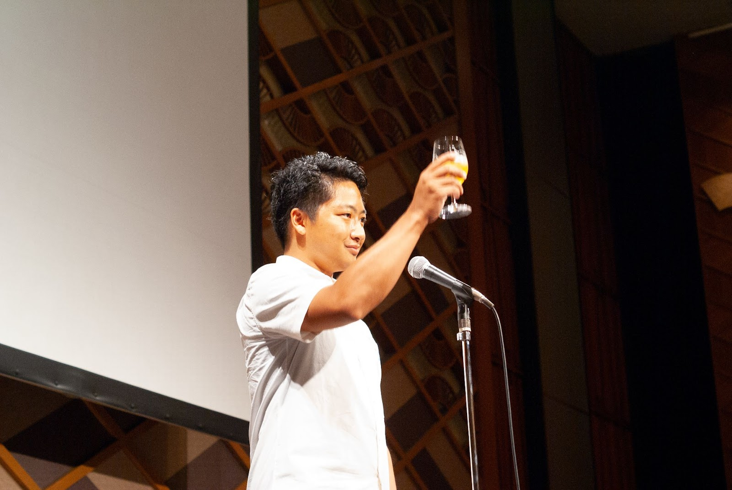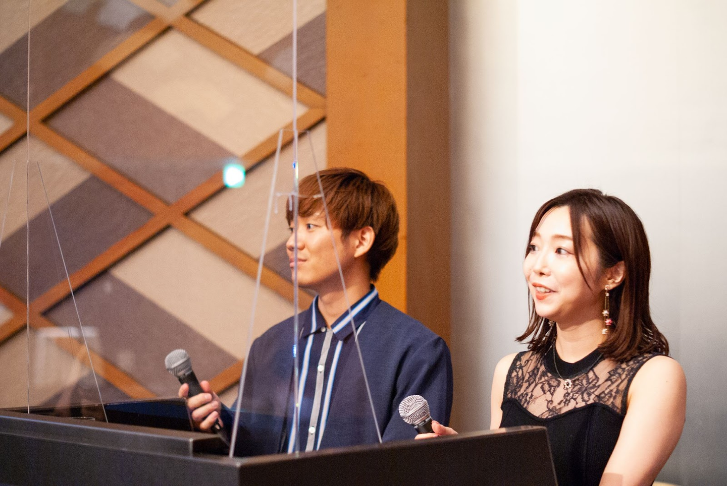 今回の司会進行は山本さんと古橋さん。大きな会場にも関わらず、堂々たる司会ぶりが光ります。安定感も抜群。そんなふたりから「まずは竹谷さんによる乾杯を」とアナウンスが。