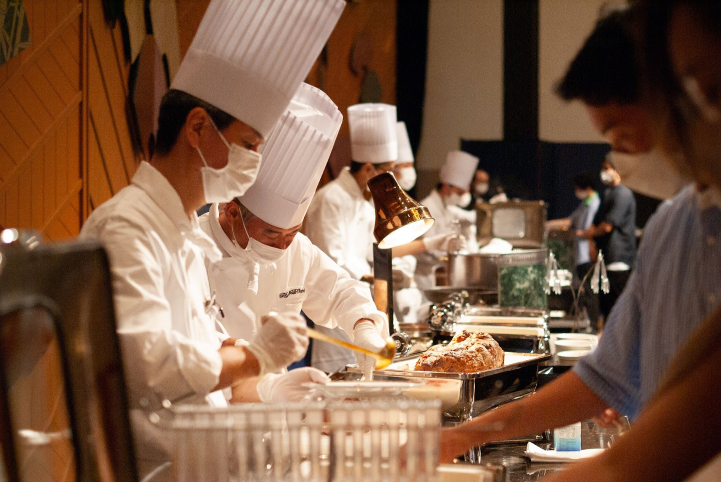 国内外のVIPから高い評価を獲得してきた“食のホテルニューオータニ”が自信を持って提供する彩り豊かなビュッフェメニュー。人気の料理の前は行列が絶えません。