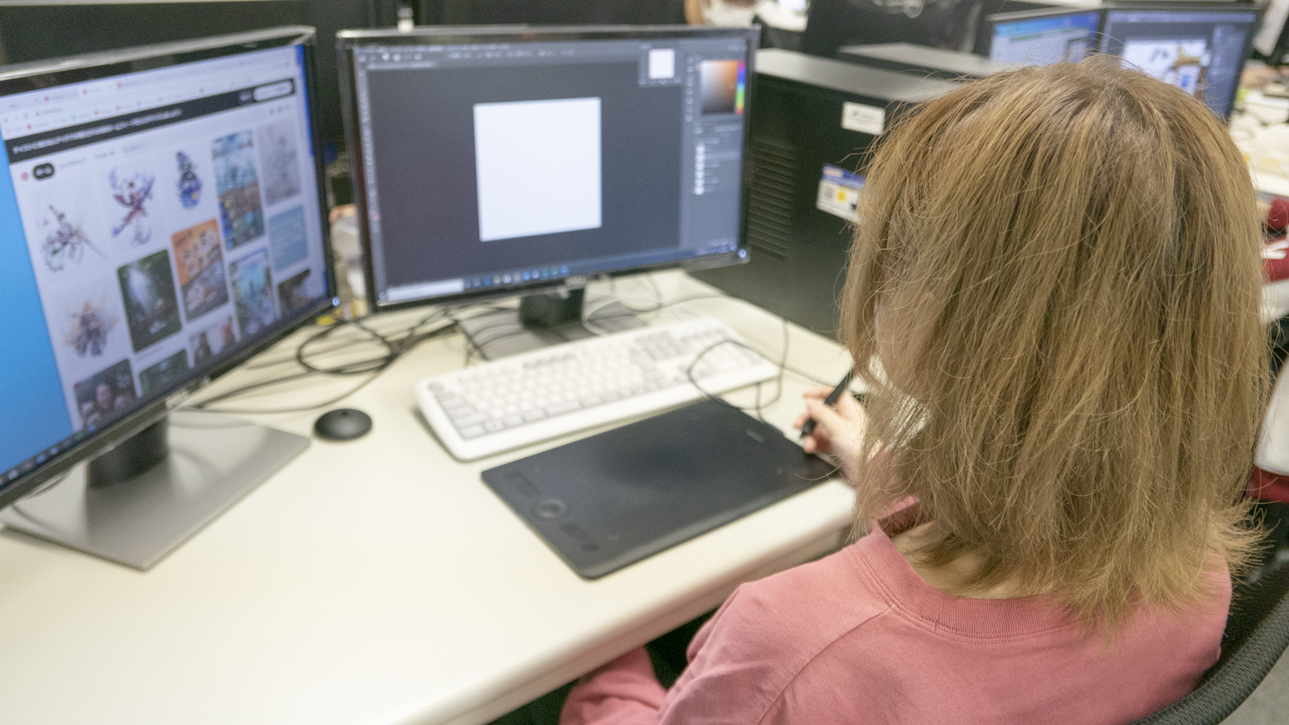 専門学校でゲームグラフィック&キャラクター専攻してました。そこでは、デッサンやクロッキーなどのイラストの基礎から、3Dや企画などゲーム制作に必要なことを学んでいました。没頭できる人物のクロッキーが特に好きでした。