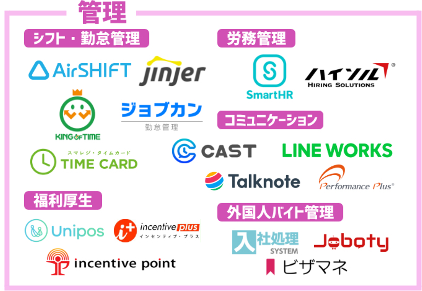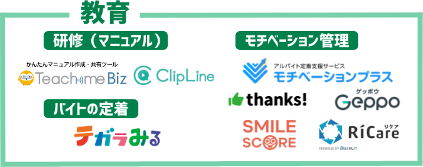 アルバイトの採用・管理・教育・金融領域に視野を広げると、企業の規模には関係なくテクノロジーを活用したツールが数多く誕生し、利用事業者も増加することで事業運営の効率化やアルバイトの勤務環境の向上に寄与しています。
