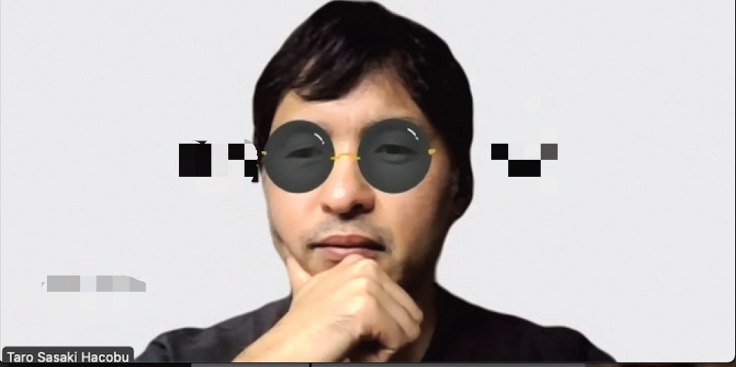 検討中の新ロゴでZOOM背景を作り、ノリノリの太郎さん(CEO)。