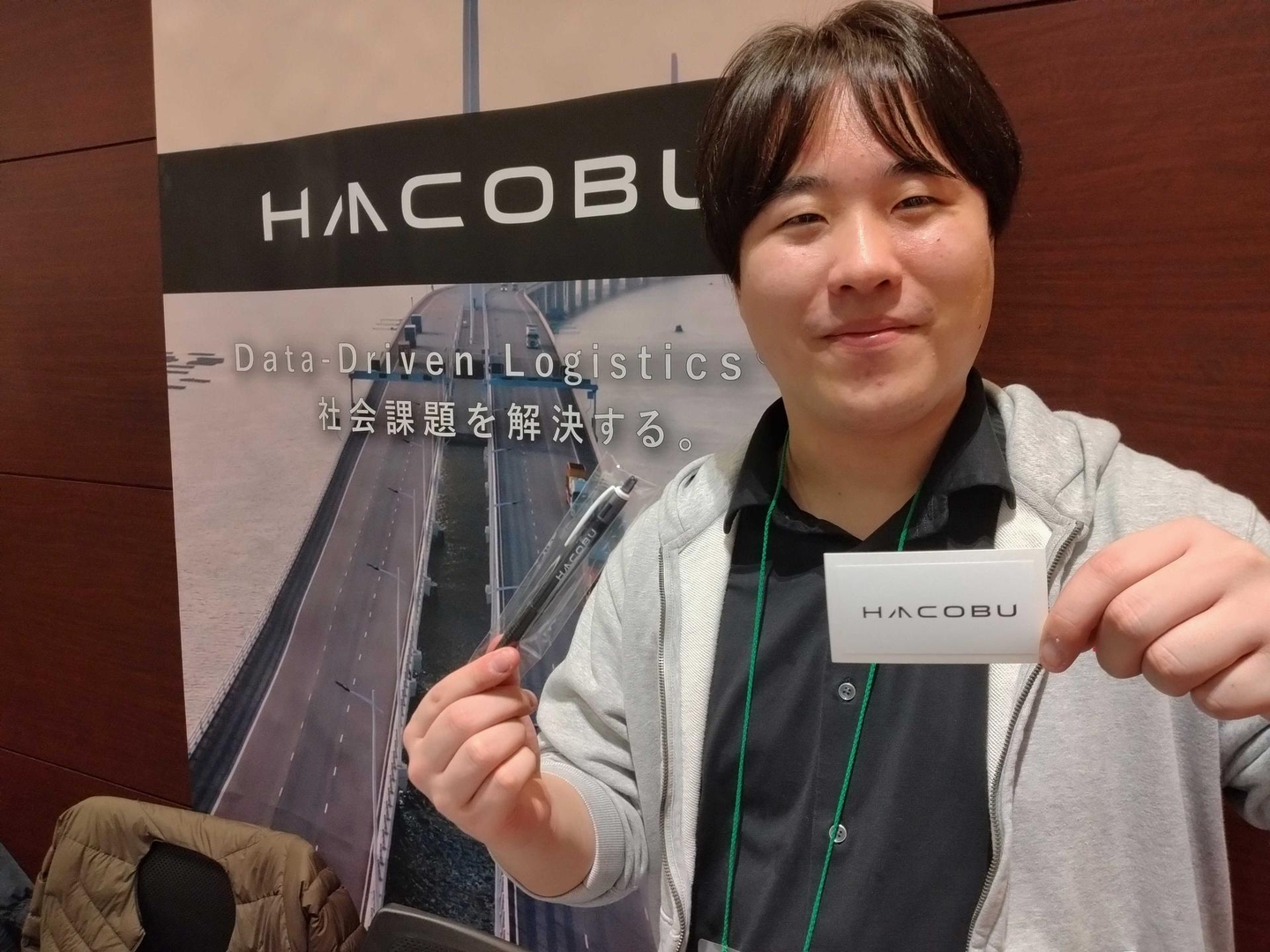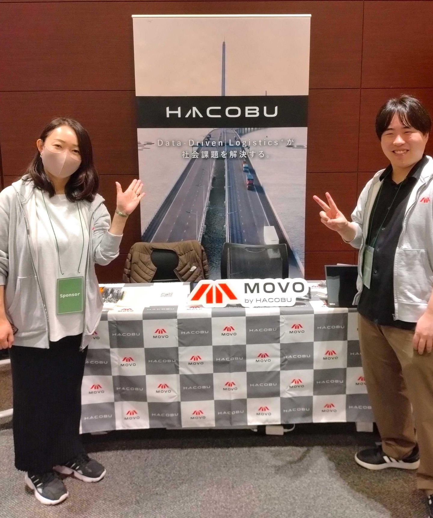 ブースには人事のじゅんじゅんさんと、トラック予約受付サービス「MOVO Berth」のバックエンドを開発しているエンジニアのRyogaさんにお願いすることにしました。