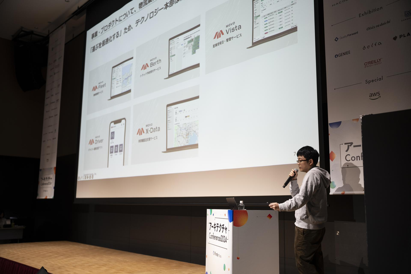 17:00からはCTO室室長の三木さんが共同輸配送サービス「MOVO X-Data」のアーキテクチャについて発表してくれました。