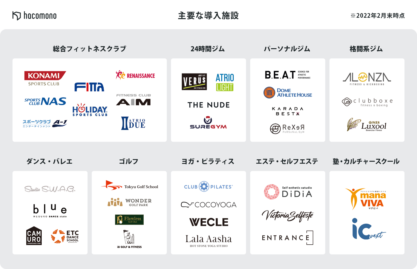 hacomonoは今後、業界と共に「Sports for All. (すべての人に運動習慣を)」を合言葉に、不健康大国日本における運動の民主化を目指すべく、フィットネスクラブ、公共運動施設、スイミングスクール・ダンスやバレエスクール・ゴルフスクールなどのウェルネス系スクールへの展開を強化してまいります。