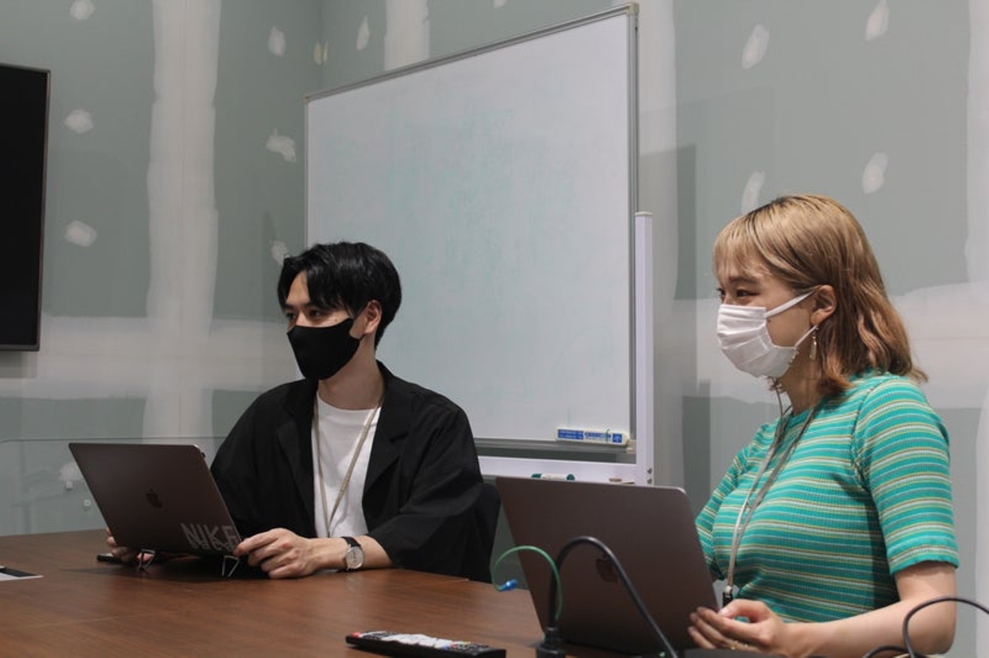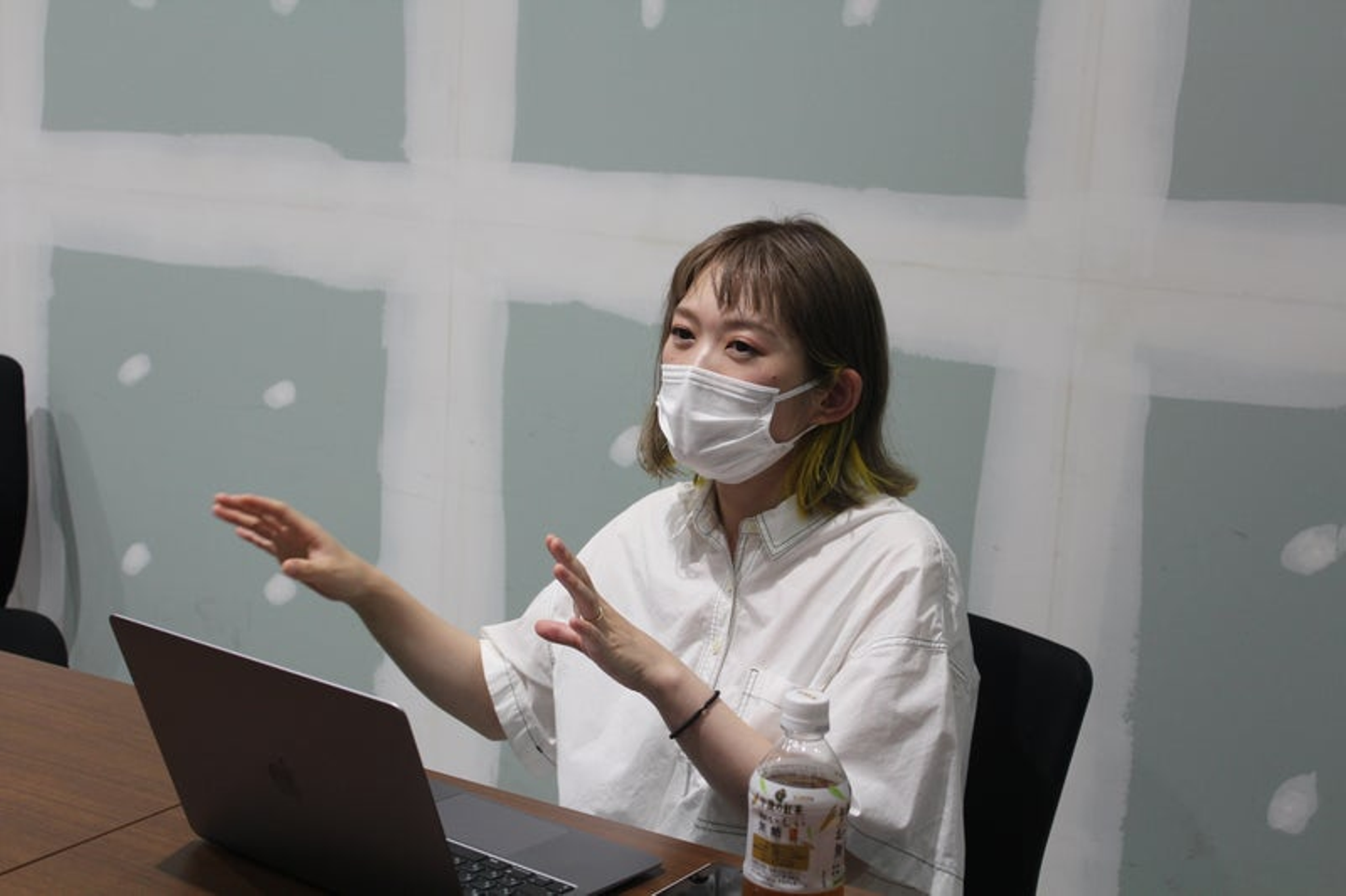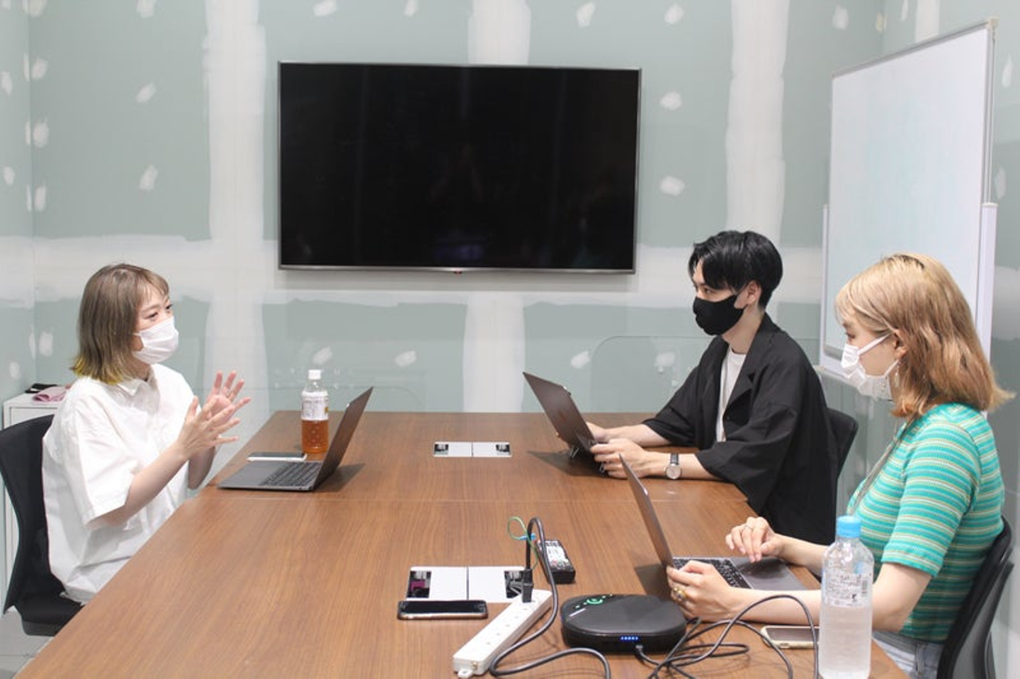 岡本(おかもと):コンテンツデザイン局の配信ディレクション課所属。営業やグループ会社のスプラシアを経て、今年の4月から撮影配信チームで撮影やWEBサイトのディレクションを担当。最近ではルルレモンを担当。趣味はサッカースタジアム観戦。調布にあるスタジアムでユニフォームを着てFC東京の応援をしている。竹中(たけなか):ユニット2所属のプロデューサー。最近では下期に納品予定のEスポーツのイベントに携わっている。プライベートではピクミンブルームというアプリにハマっていて、ピクミンを育てるために友達と電話をしながら歩くのが趣味。一緒にやってくれるピクミン仲間募集中!