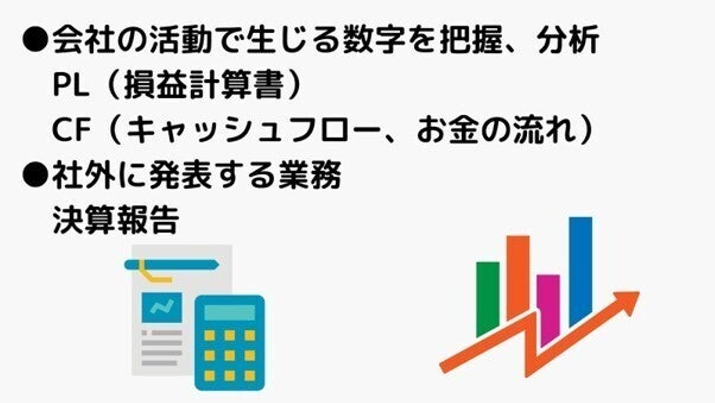 具体的にお話をすると、下記が財務経理部の業務内容となります。
