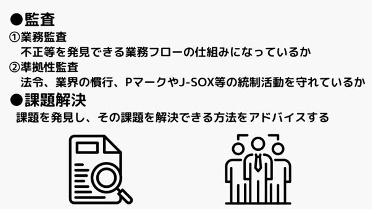 ーー続いて、東久保さんにお話を伺います!まずは、内部監査の役割や構成、業務内容を教えてください。
