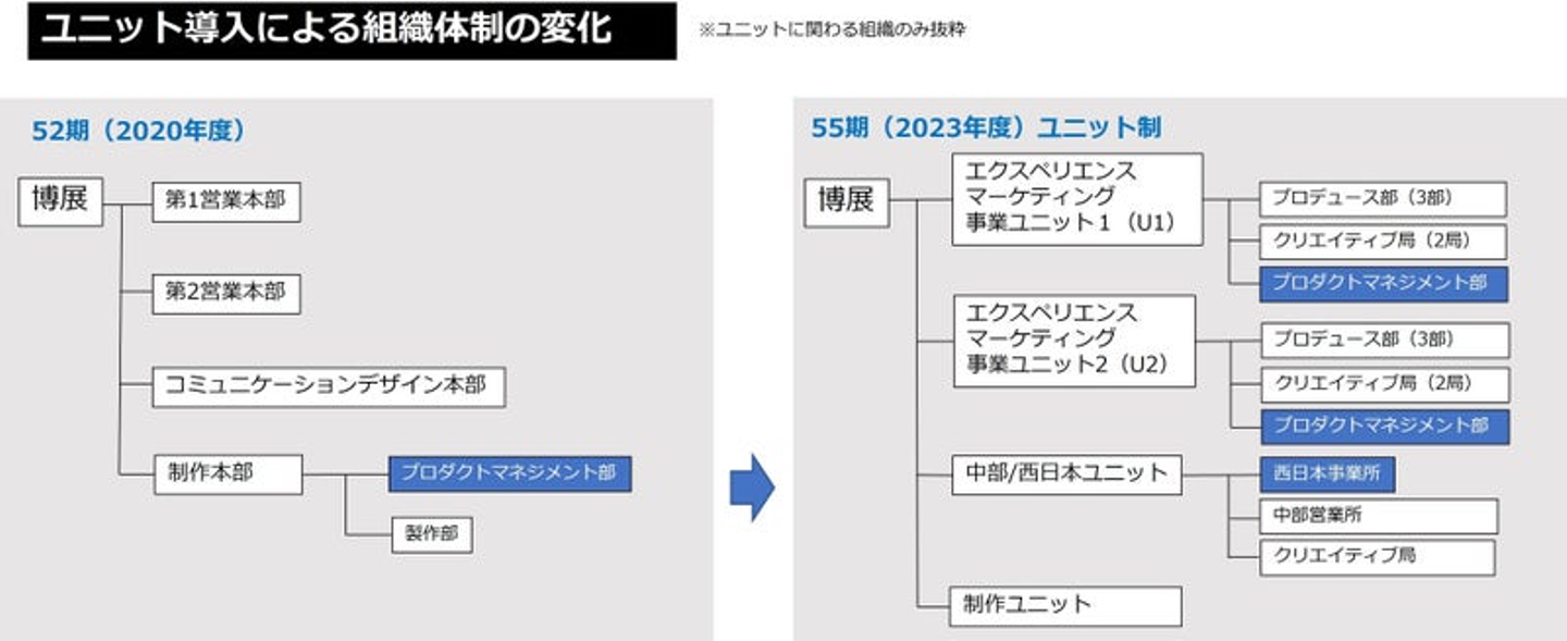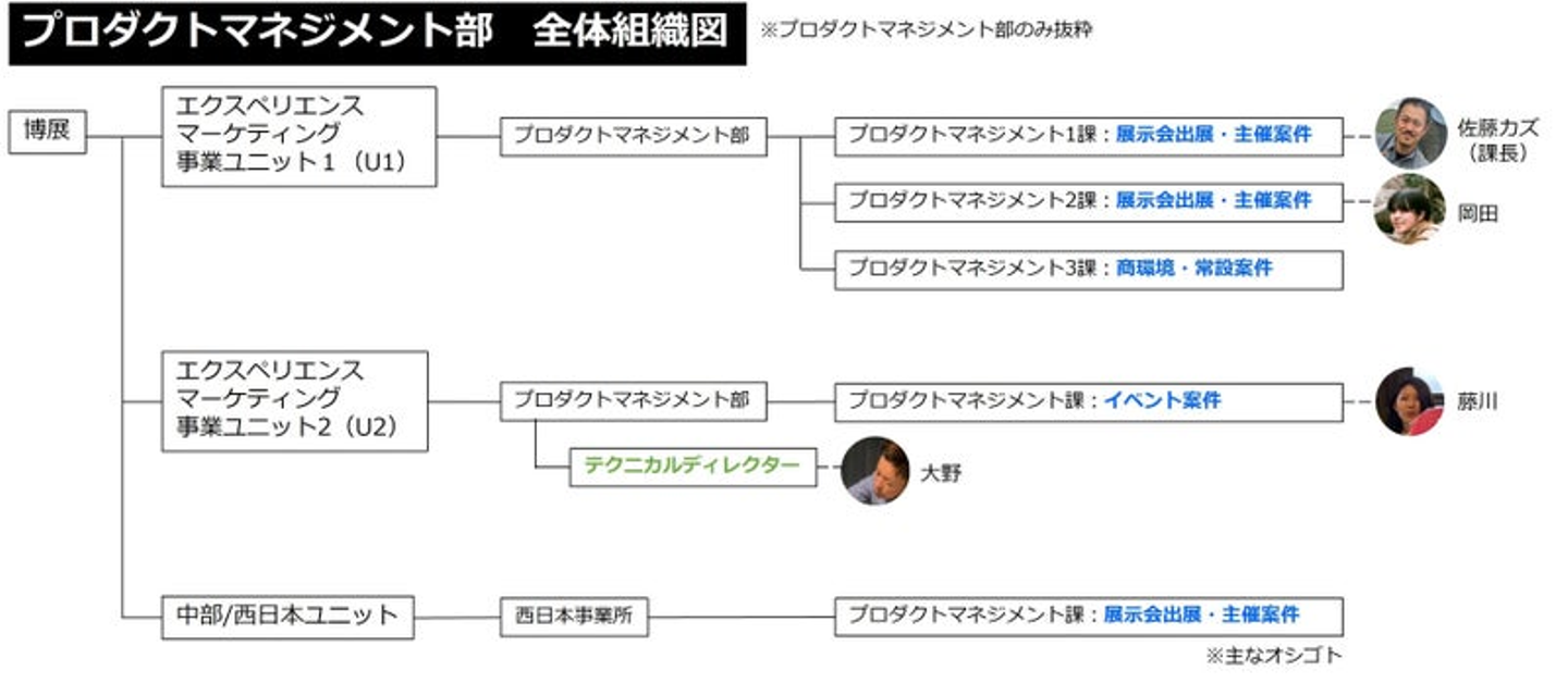 佐藤:私が所属しているユニット1(U1)の領域は、PM1・2課が主に合同展示会や主催案件※を扱っていて、PM3課が商環境・常設案件を扱っています。また、中部/西日本ユニットも、キャリア採用のPM・制作ディレクターが増え、一緒に展示会案件をやってくれています。