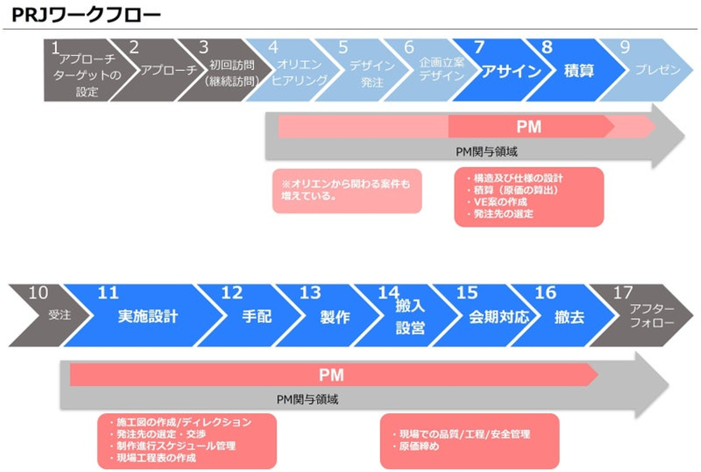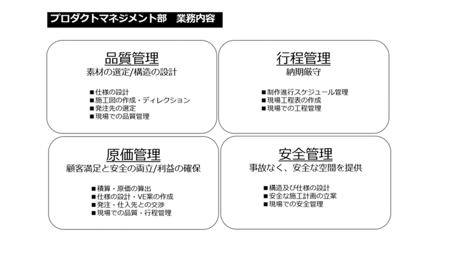 ”ハード商材”と呼ばれる、造作物に関わることは全てPMで設計・制作・施工管理をする、というのが我々のミッションになりますね。