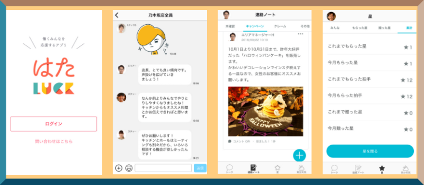 アプリのなかには「連絡ノート」や「星を贈る」などいろんな機能があるのですが、その使い方を理解してもらうだけではなくて、こういった目的で使ってくださいね、というところも含めて店長さんやアルバイトさんと共有しています。