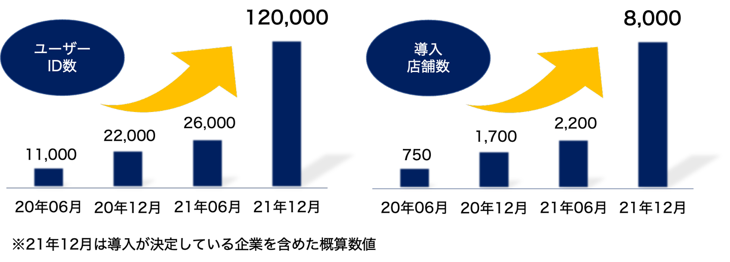 2019年6月のローンチ後、順調に契約店舗数とID数を増やしています。店舗サービス業にとって新型コロナウイルスによる影響が大きいかと想像される方もいらっしゃるかと思いますが、コロナ禍だからこそ収益構造の見直しや生産性の向上、従業員の方の満足度向上などに意識を向けられる企業様が多く、様々な企業様に導入をご決定いただきました!