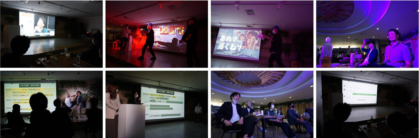今回のHATALUCKの総会は2部構成になっており、第1部の表彰式ではこの上半期でHATALUCKのVALUEに則り最も成果を挙げた人やプロジェクトを表彰し、第2部では創業5周年を祝したこの5年間の歴史を振り返るチーム対抗の発表を行いました。