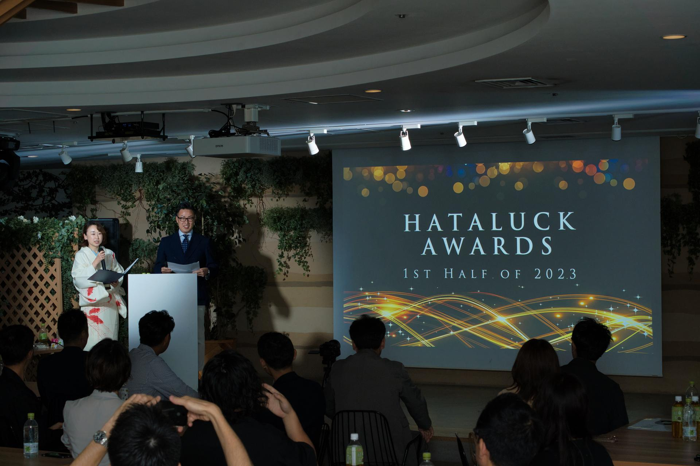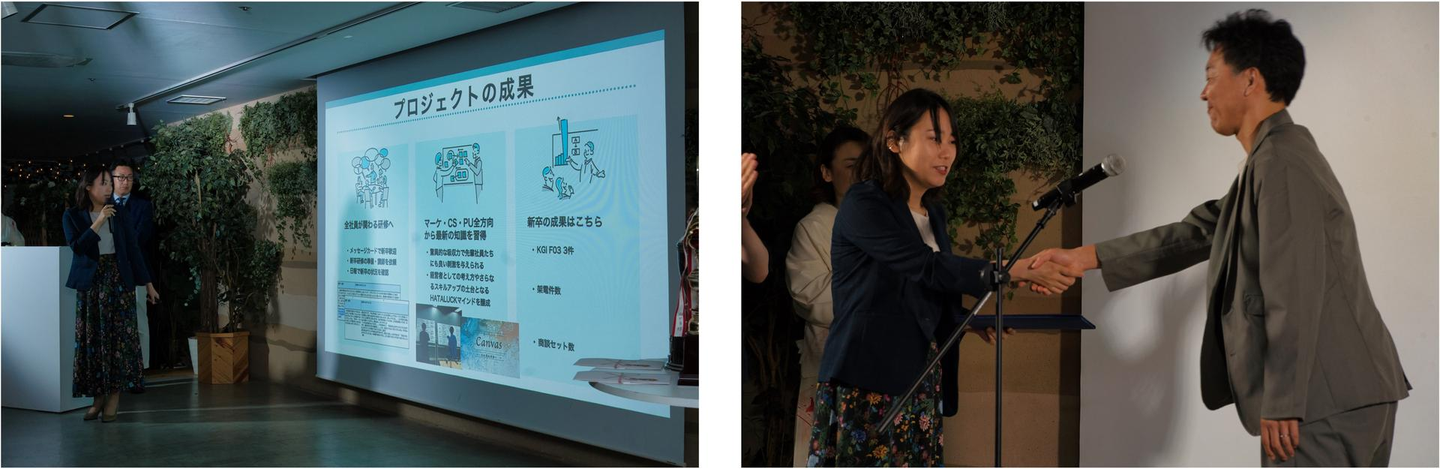HATALUCKの総会は2部構成になっており、第1部の表彰式ではこの上半期でHATALUCKのVALUEに則り最も成果を挙げた人やプロジェクトを表彰し、第2部ではこれから拡大期に差し掛かるHATALUCKの行いました。