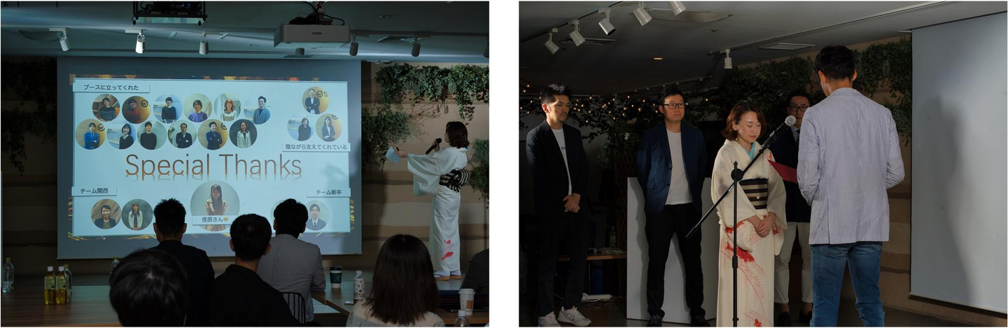 正直、Best取れなかったことは、悔しいです。新卒一期生で前例もない中、「社会人」ではなく「経営者」を育てるためには全社員の経験を活用しなければ難しいと思いました。そのために、入社式のタイミングからどうやったら興味を持ってもらえるかの仕掛けから考え、各ユニットやグループから選出した代表者を中心になってなるべく多くの社員を研修に巻き込みました。全員が当事者意識を持ってこの半年取り組んだからこそ、新卒も入社から3ヶ月で見違えるほど成長し、それを見た社員も少なからず影響を受けているんじゃないかと思います。だからBestを取れなかったことが何より悔しいです。でも、初めてだったからこそ課題もあり、また来年ブラッシュアップできる。だから内定者の皆さん期待していてください!