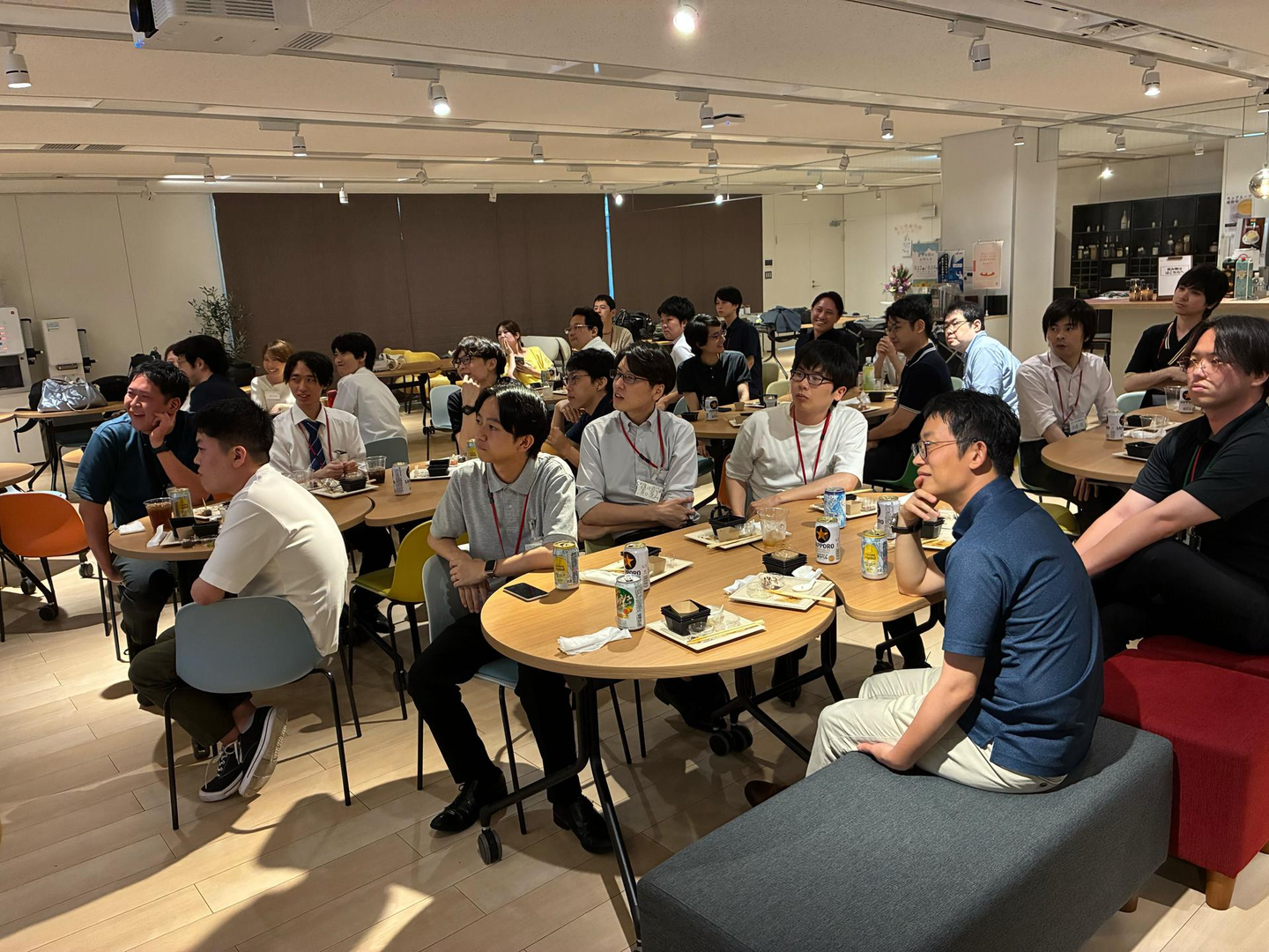 普段はどういうことしてるの?仕事ではどういう技術触ってる?学生の頃からプログラミングやってたの?など、各テーブルはおいしいごはんとお酒で大盛り上がりでした!
