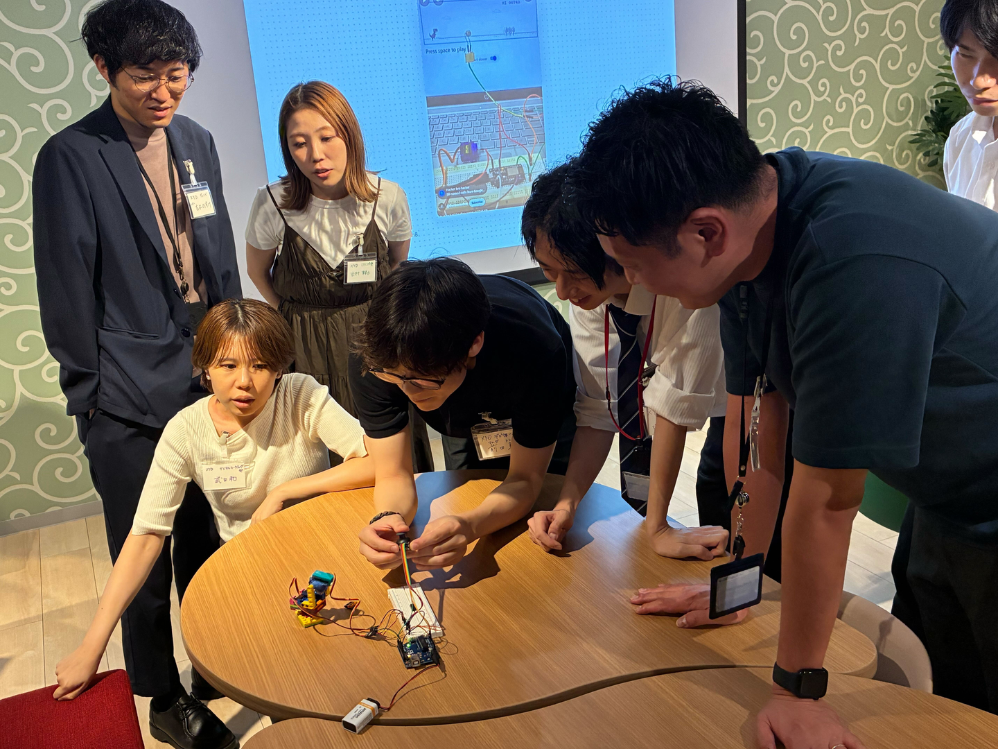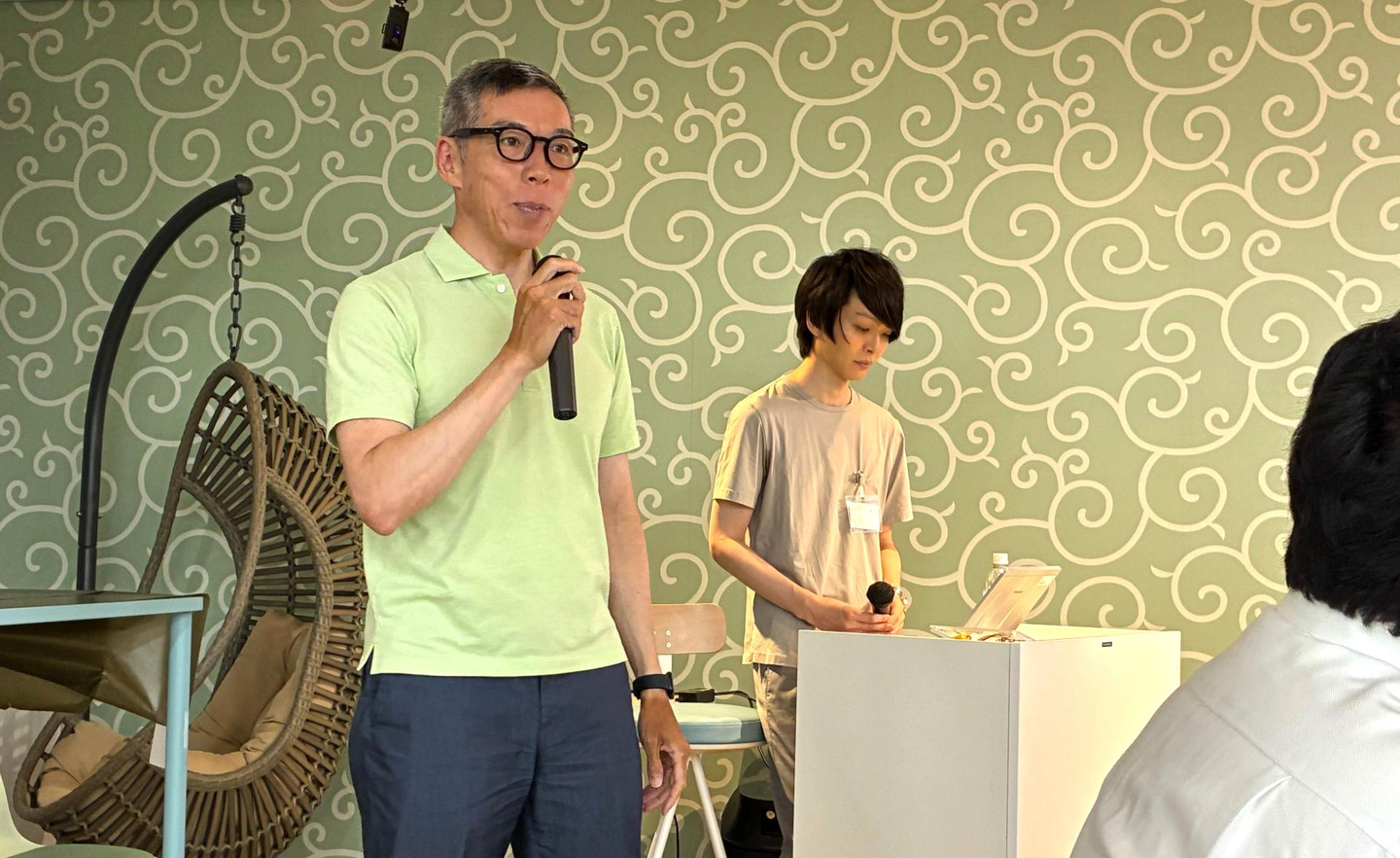今回のハッカソンのオブザーバーは、有地社長と、ヘッドジャパン開発二部の河野さん&飯塚。