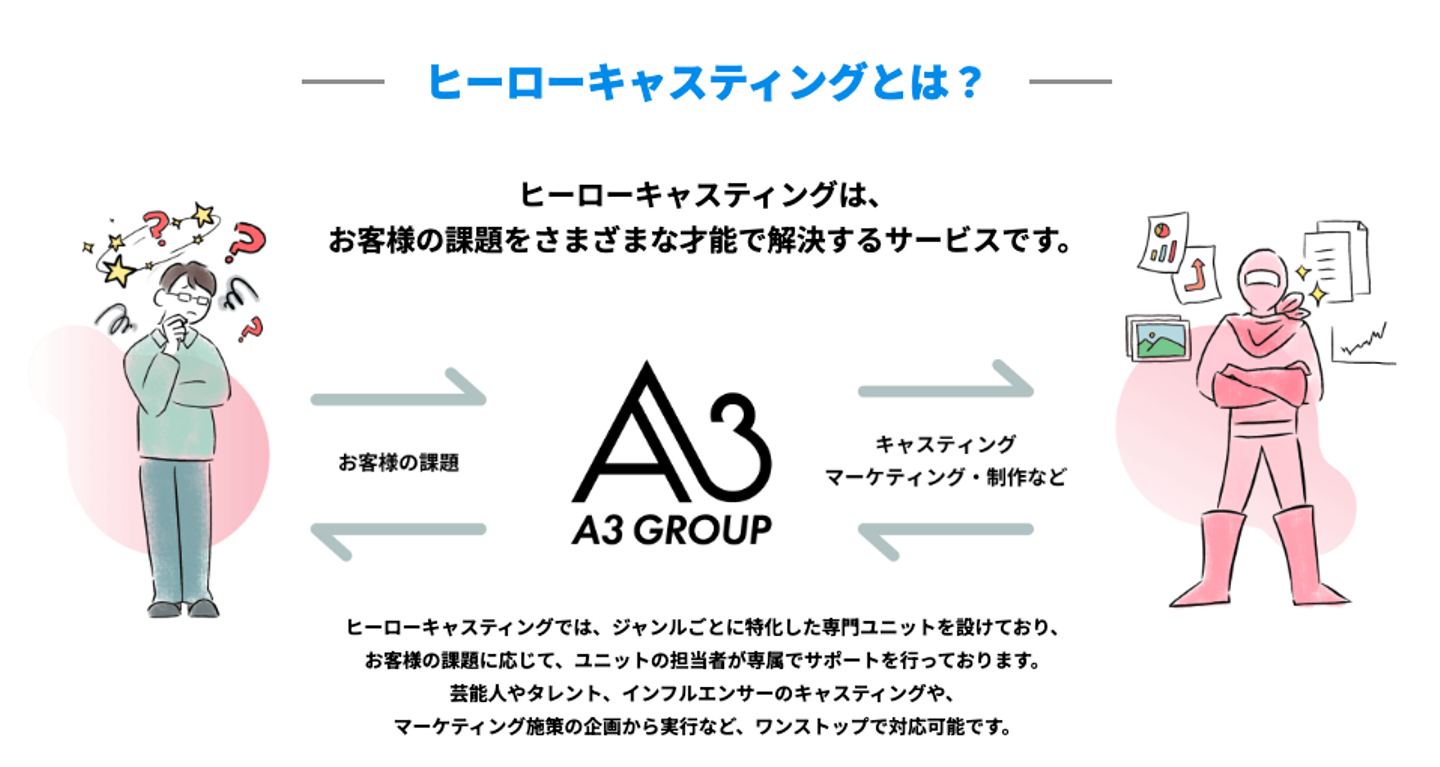「世界の才能をつなぐプロフェッショナル」をミッションに掲げるエイスリーグループの、株式会社エイスリー(以下エイスリー)と株式会社A3X(以下A3X)は、キャスティングサービス「ヒーローキャスティング」のサービスサイトを全面リニューアルいたしました。