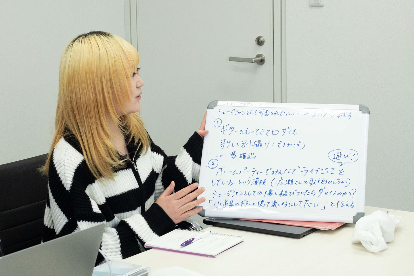一日の最後は、アーティスト広瀬咲楽さんによるサプライズのミニライブ! 自らがマネジメントするアーティストの魅力や武器を知るべく、ミニライブを体験しました。
