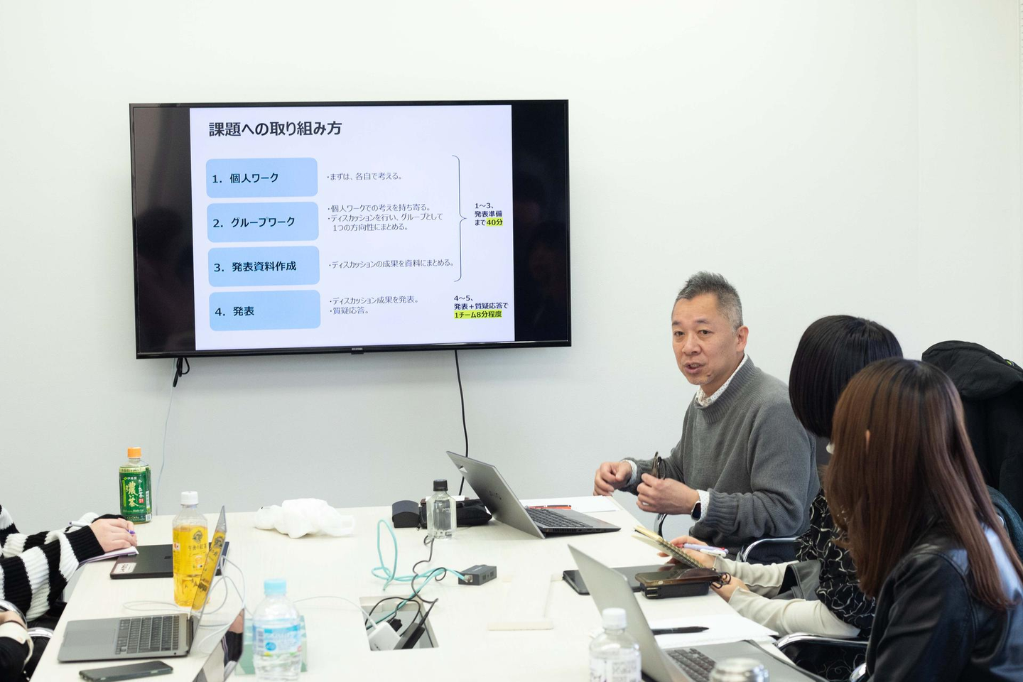 その後、各チームより提案内容をプレゼンしました。数字に基づいた根拠を示すことの重要性、そしてタレントの稼働範囲を明確にした提案の必要性を学び、芸能マネージャーの業務に関する理解を深めました。
