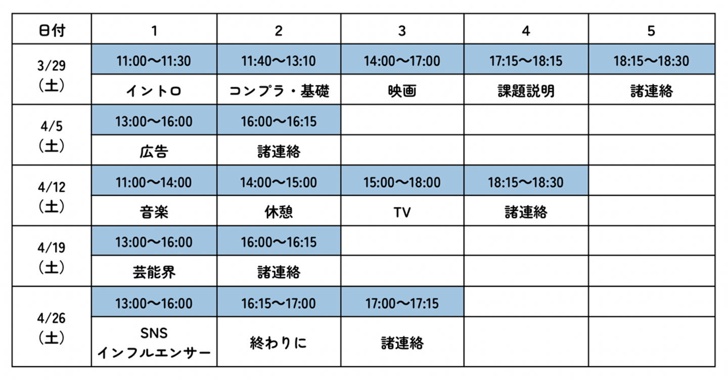第一週目は、「イントロダクション・業界基礎」と「映画」の講座からスタート。