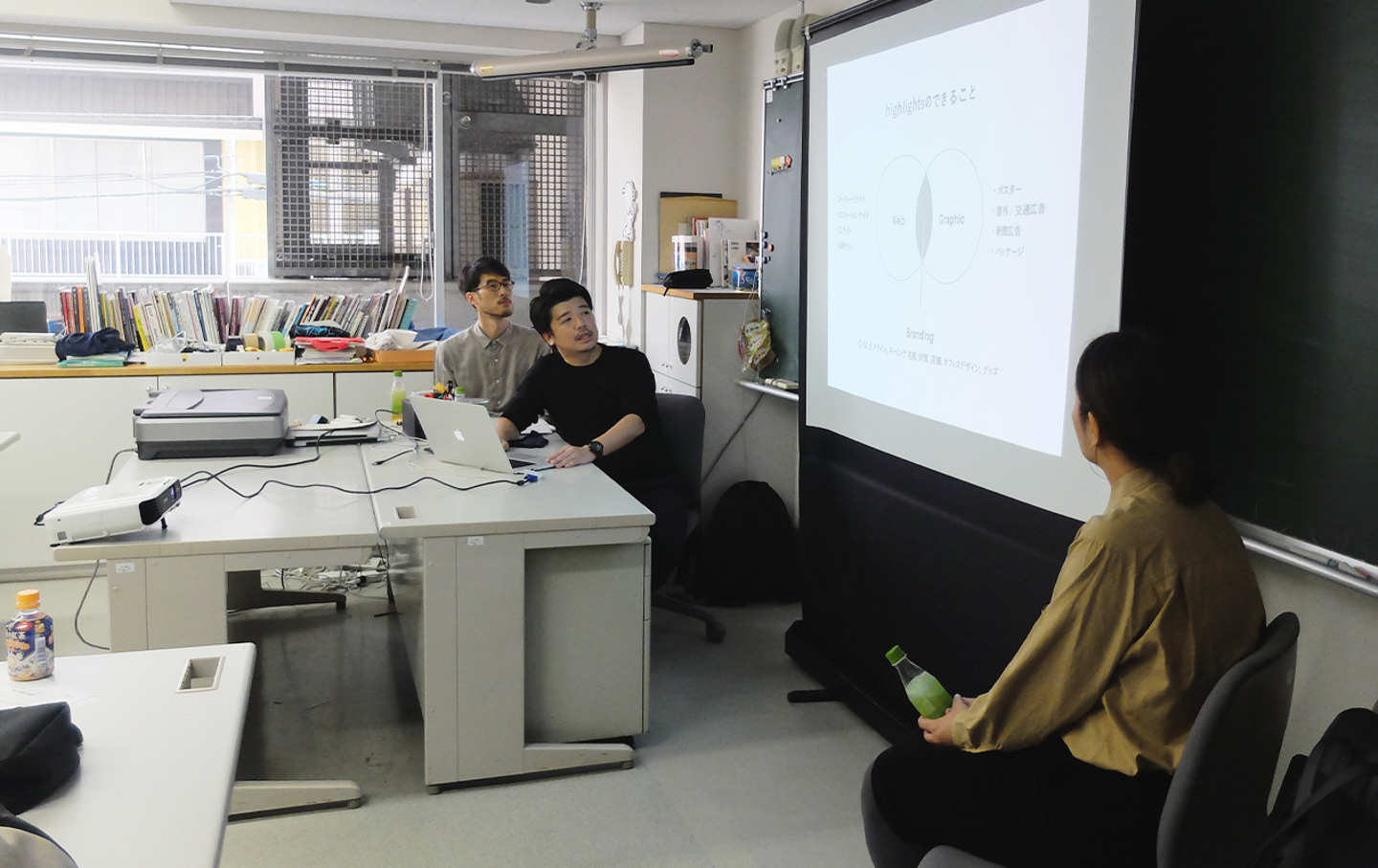2018年11月、ハイライツのメンバー4名が教壇に立ち、横浜デザイン学院の特別授業を行いました。テーマは「デザイナーの仕事」。総合デザイン学科の生徒たちが自分の進む道をイメージでき、デザイナーの姿勢や考え方を学べるようにすることがこの授業の狙いです。