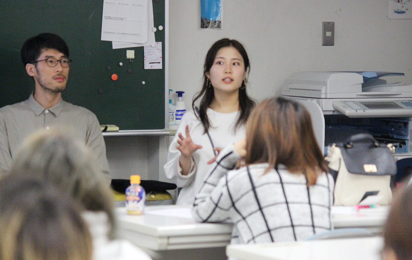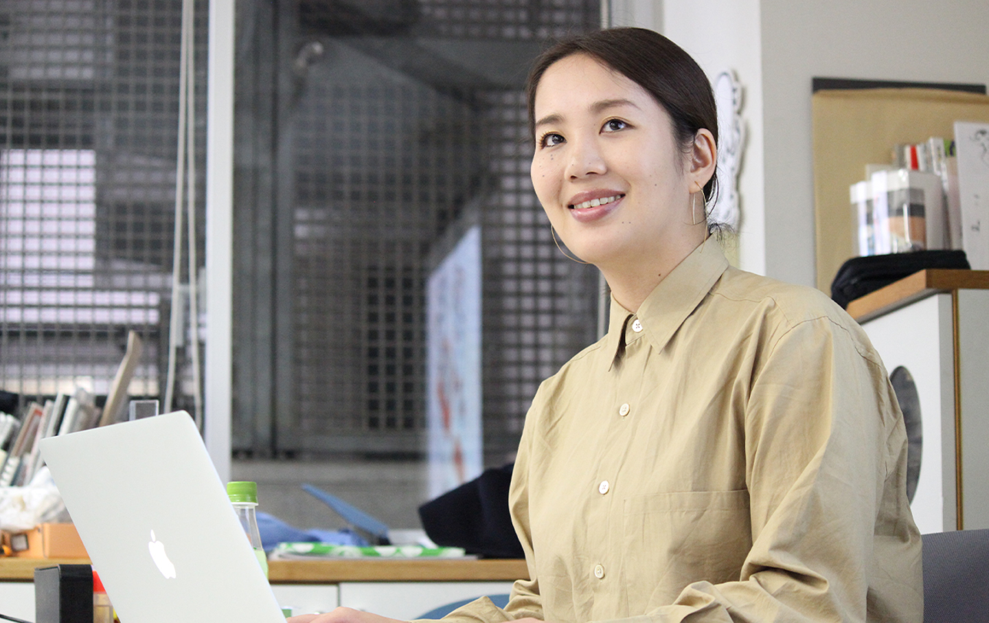 また「入社した頃の仕事内容は?」という質問には、入社して半年のアシスタントデザイナーの苗村美波が答えました。日常の業務は、自分が担当している案件のデザインを企画したり制作すること、そして来客の対応と答えたうえで、学んだ体験も披露。アートディレクターからデザインの修正を受けるとき、自分が否定されているという気持ちになるけれど、これはあくまでデザインについての対話であり、より良い答えを出すために必要なプロセスであることを学んだと語りました。