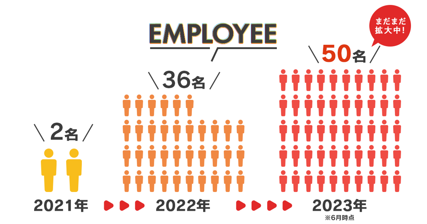 2021年5月に発足した100studio。設立当初のメンバーは数名でしたが、現在は50名と仲間が増えています。まだまだ小さな集団ではあるものの、経験豊富な人材が数多く揃っているのが魅力。2024年までに100人、2026年までに200人へと成長していくことを目標に、まだまだ新しい出会いを求めています!