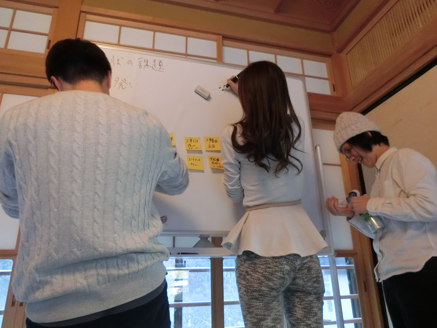 また、これまでプロジェクトをこなしてきたなかで「これを防げたらなぁ」といった課題を出しあって、どんな方法で解決できるか、ホワイトボードを使いながらブレストしました。
