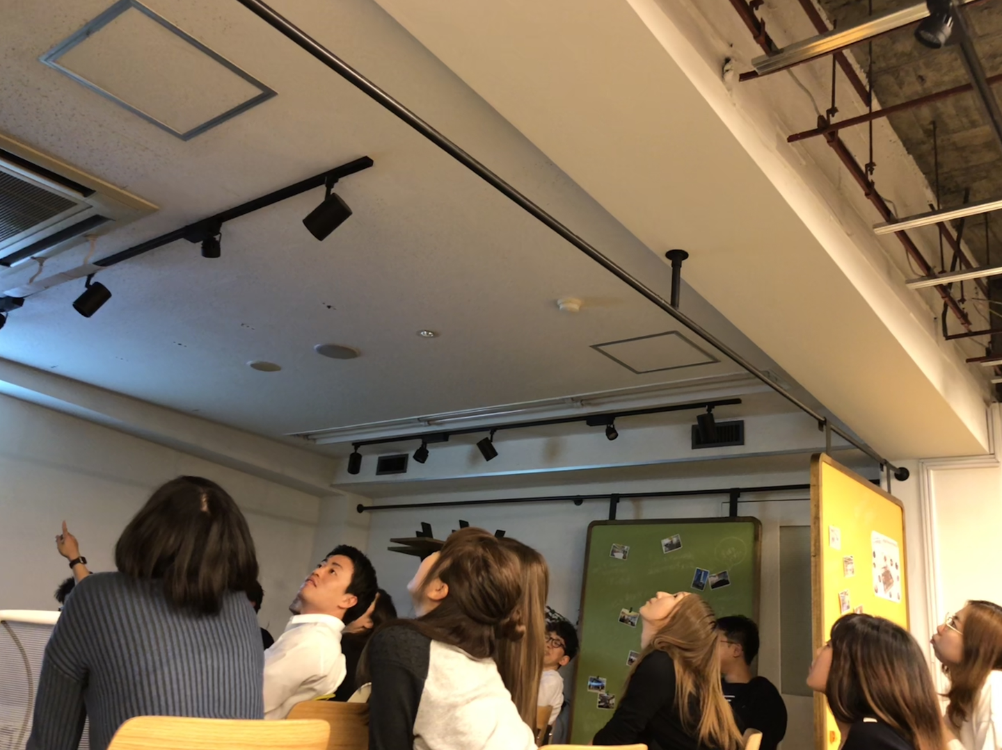 ヒトカラオフィスの天井を見上げてみるメンバーたち。
