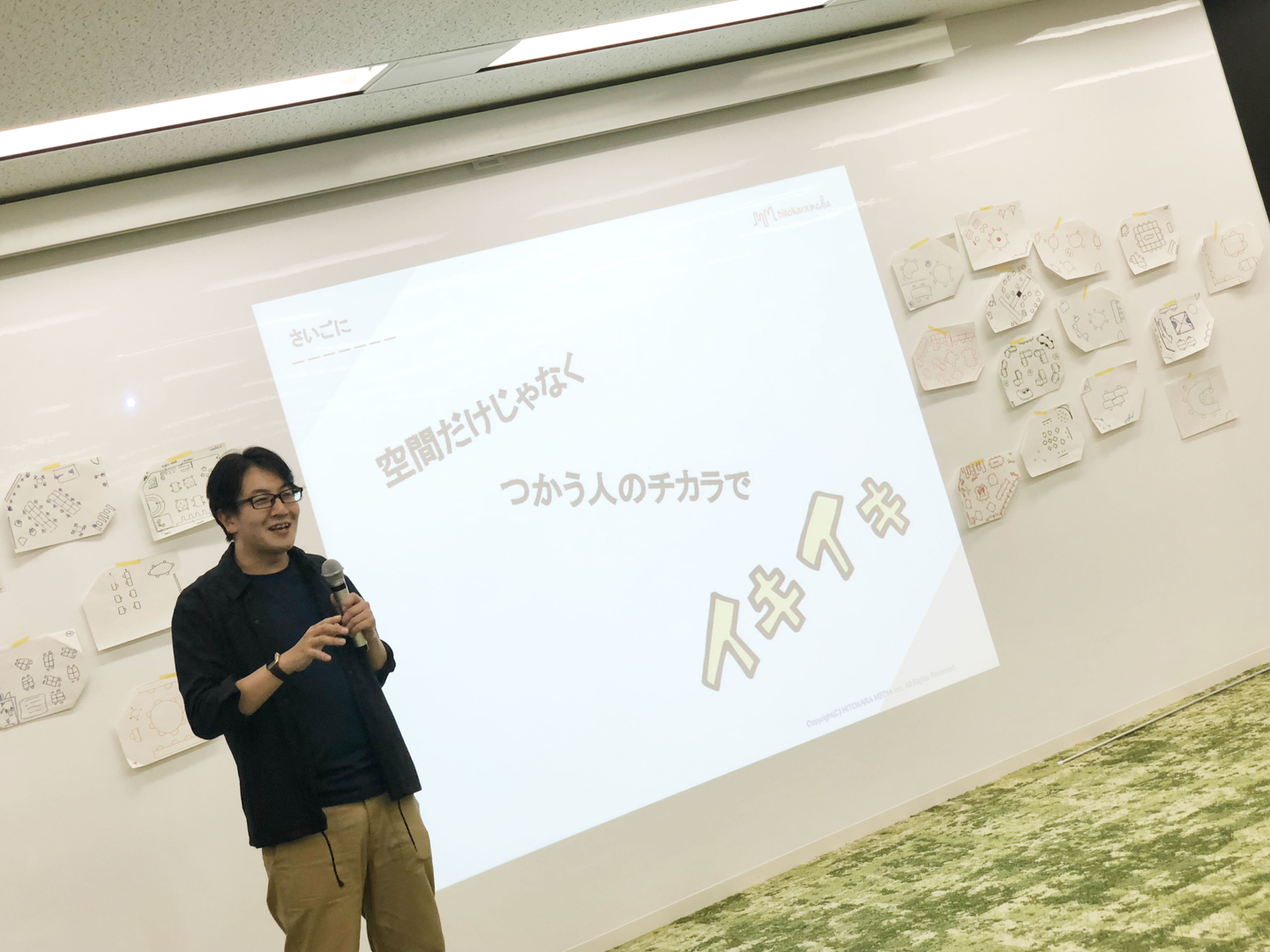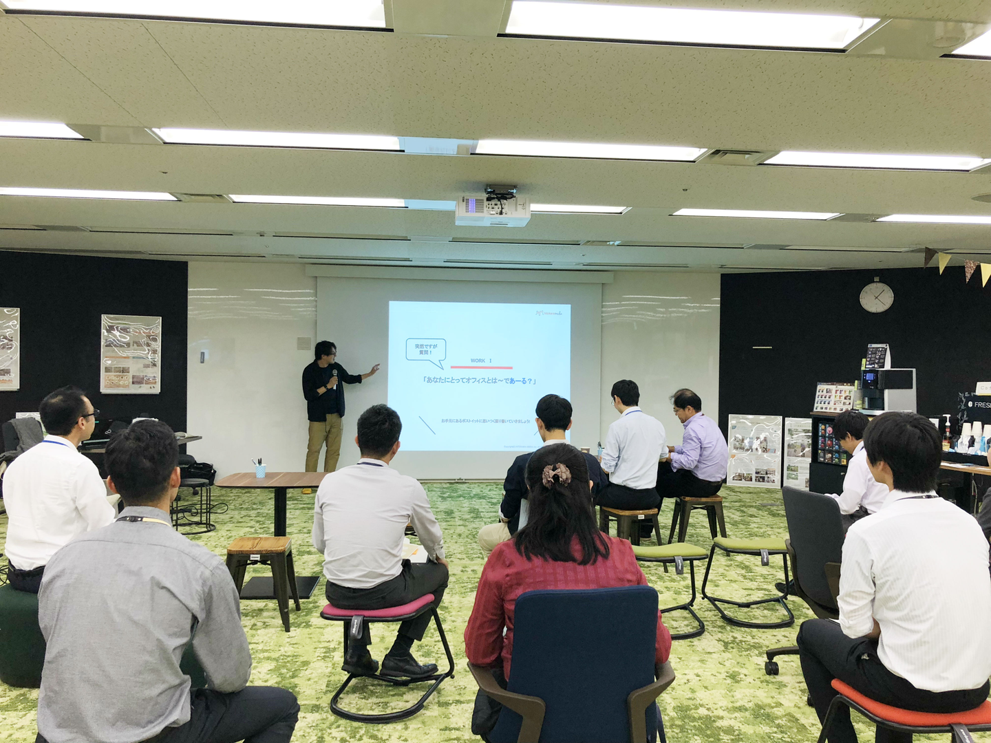 ヒトカラメディアは、「働く場からイキイキがうまれる〜オフィスレイアウトからできるコミニケーション作り〜」をテーマに講演とワークショップを担当させていただきました。